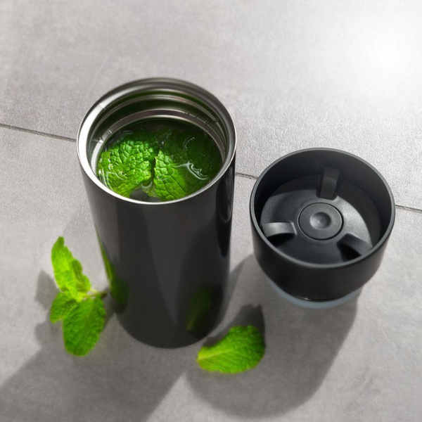 Termokrūze ar dubultām sienām antracīta krāsā ar tilpumu 300 ml. Tas ir izgatavots no nerūsējošā tērauda. Krūze uzturēs jūsu dzēriena temperatūru apm. 6 stundas (mērot istabas temperatūrā), kas padara to lieliski piemērotu jūsu tējai vai kafijai. Pateicoties 360° atvērumam, tas ļauj dzert visapkārt. Iepakots dāvanu kastītē.