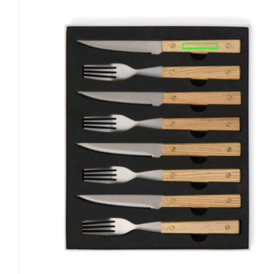 Uzklājiet galdu ar šo mūžīgo 8-daļīgo BBQ galda piederumu komplektu, kas izstrādāts, paturot prātā skandināvu vienkāršību. Izgatavots no FSC® sertificēta oša koka un augstas kvalitātes nerūsējošā tērauda, šajā komplektā ietilpst četri asi naži un četras dakšas ar ērtu rokturi. Šis komplekts ir ne tikai prieks lietot, bet arī stilīgs papildinājums jebkurai grilēšanai vai ēdināšanai.