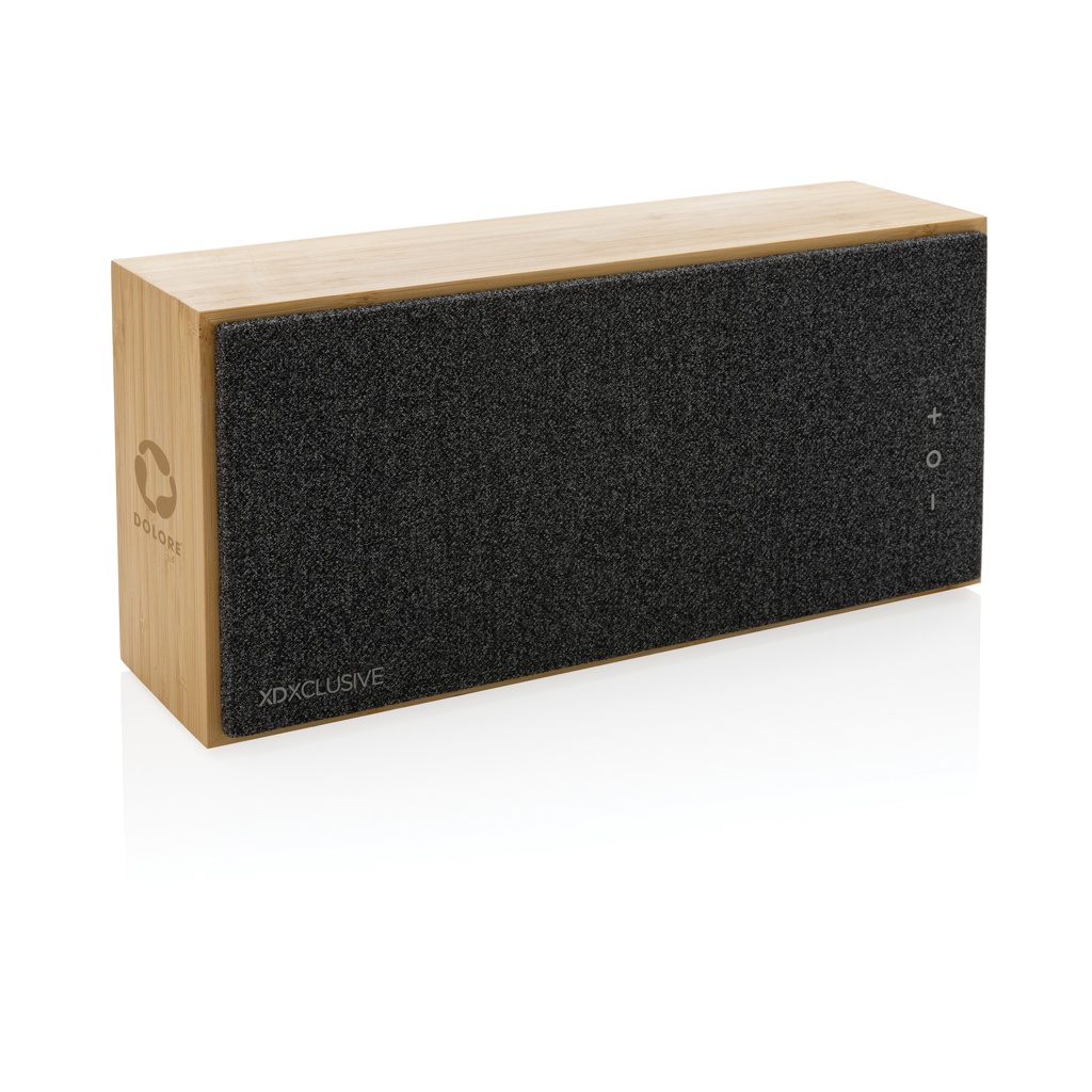 Роскошный и мощный динамик 20 Вт с чистым звуком и мощными басами. Внешний корпус изготовлен из бамбука, сертифицированного FSC на 100%. Пластиковые компоненты изготовлены из переработанного АБС-пластика, сертифицированного по стандарту RCS (Recycled Claim Standard). Общее содержание переработанных материалов: 17 % от общего веса изделия. Сертификация RCS гарантирует полностью сертифицированную цепочку поставок переработанных материалов. Динамик оснащен BT 5.1 для легкой и плавной работы на расстоянии до 10 метров и низкого энергопотребления. Аккумулятор емкостью 1200 мАч обеспечивает до 6 часов воспроизведения и может быть полностью перезаряжен за 3 часа. С функцией подхвата и микрофоном для ответа на (видео) звонки. Упакован в коробку из крафт-бумаги FSC mix. Включает сертифицированный RCS переработанный кабель для зарядки TPE.