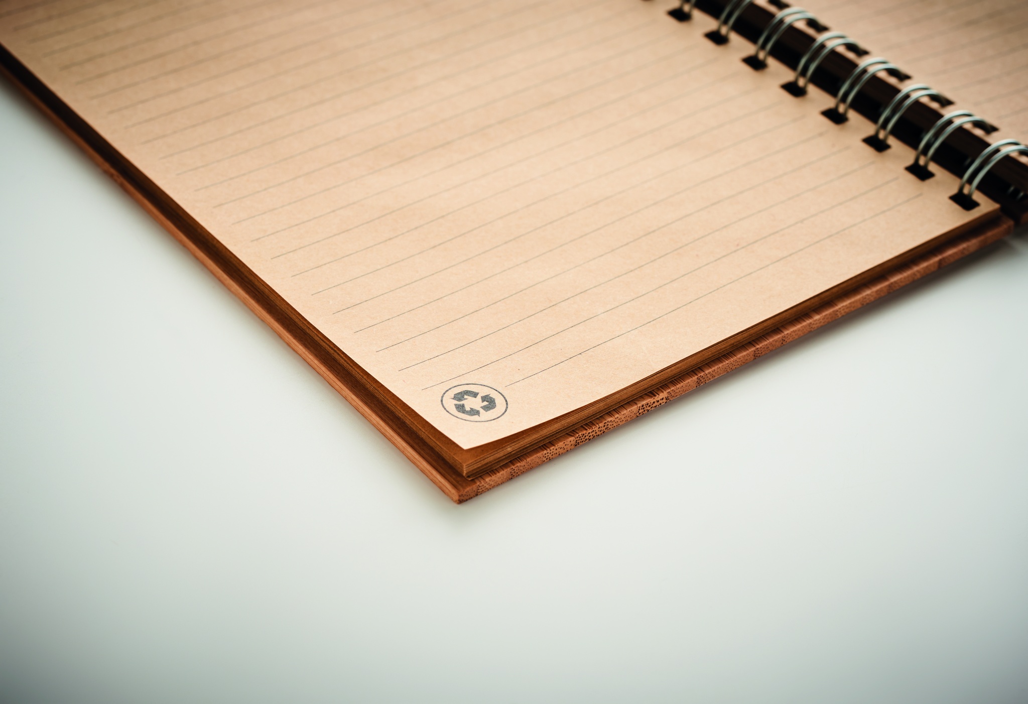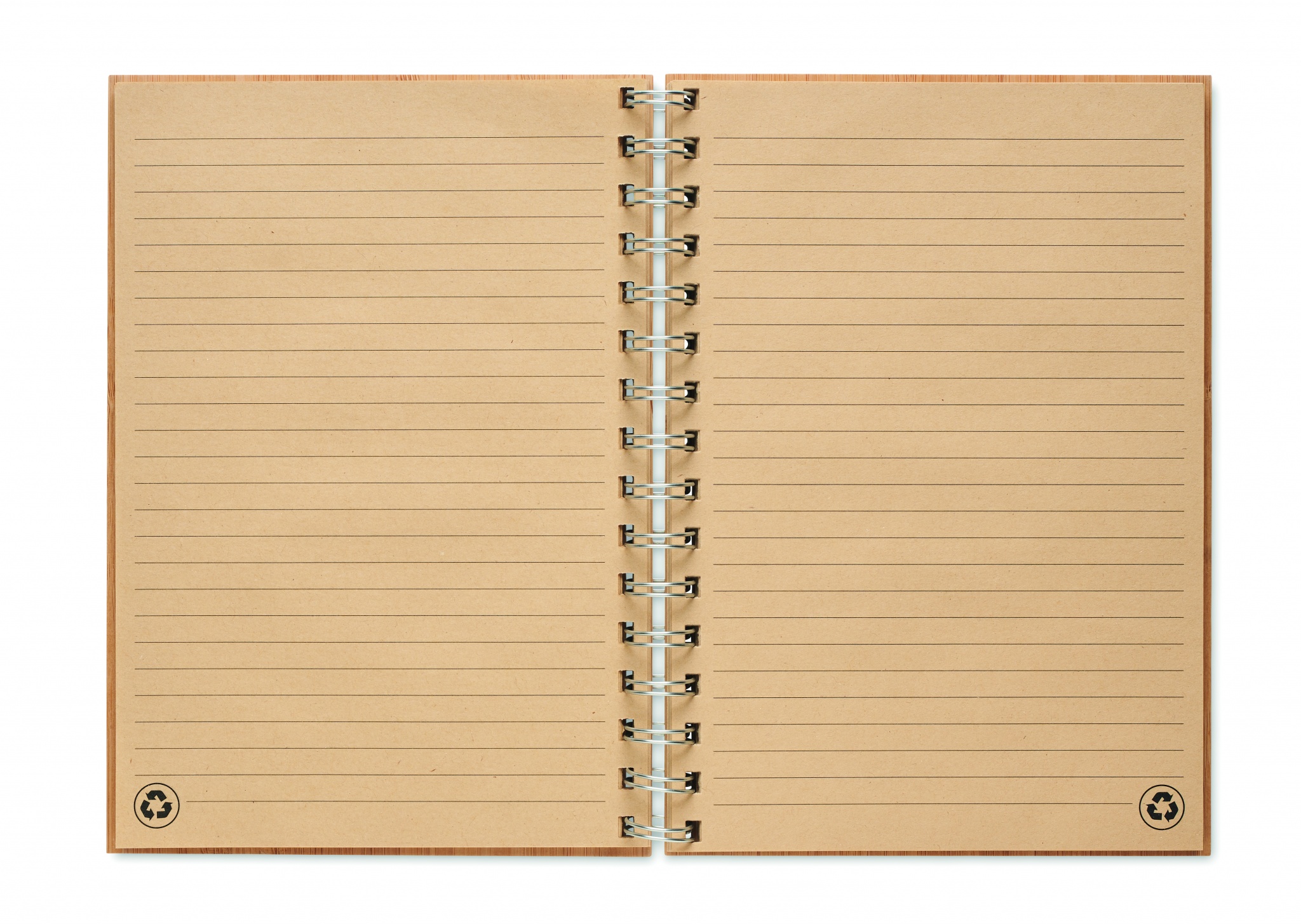 Блокнот А5 в бамбуковой обложке. Двойной кольцевой переплет, 140 линованных страниц из крафт-бумаги (70 листов).