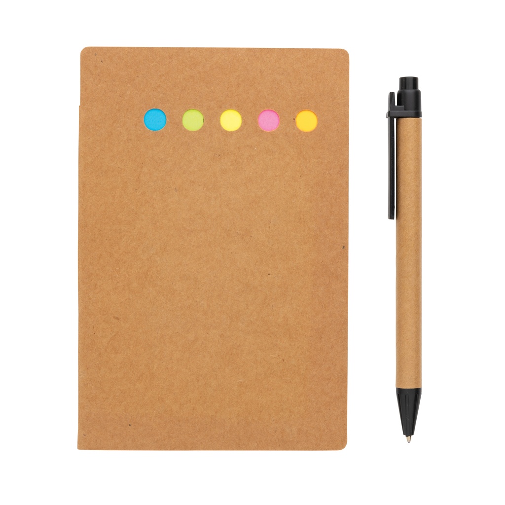 Суперудобный буклет из крафтовых стикеров для всех этих маленьких заметок и напоминаний в течение вашего напряженного дня! Буклет имеет обложку из крафт-бумаги (350 г/м²), большой блокнот на 50 листов; 4 маленьких и 1 средний блокнот на 25 листов каждый. Включает небольшую удобную переработанную бумагу и ручку ABS с синими чернилами, длина письма 800 метров.