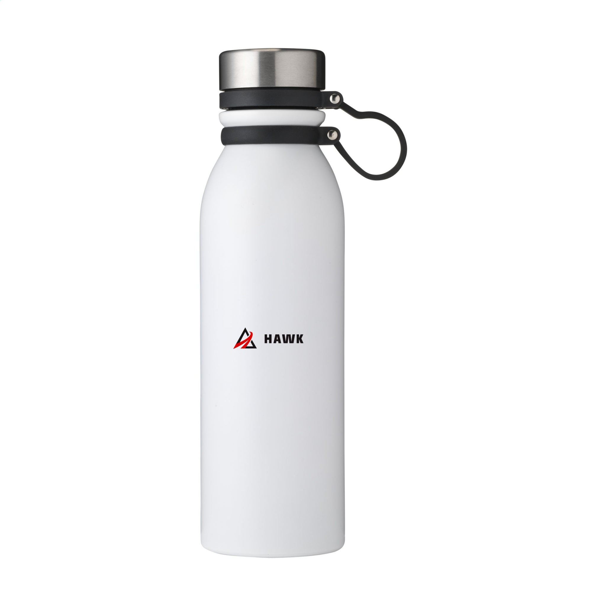 Бутылка для воды/термос из нержавеющей стали с двойными стенками, вакуумной изоляцией, герметичная. Крышка с резьбой прикреплена к вращающемуся силиконовому ремню для переноски и остается прикрепленной, когда бутылка открыта, поэтому одна рука всегда остается свободной. Подходит для поддержания температуры холодных или горячих напитков. Емкость 600 мл. Каждый предмет упакован в индивидуальную коробку.