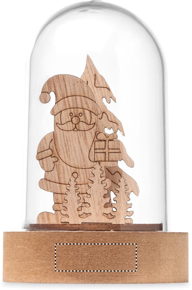 Christmas ornament in MDF and PET case with 1 LED light. Includes 3 cell batteries.