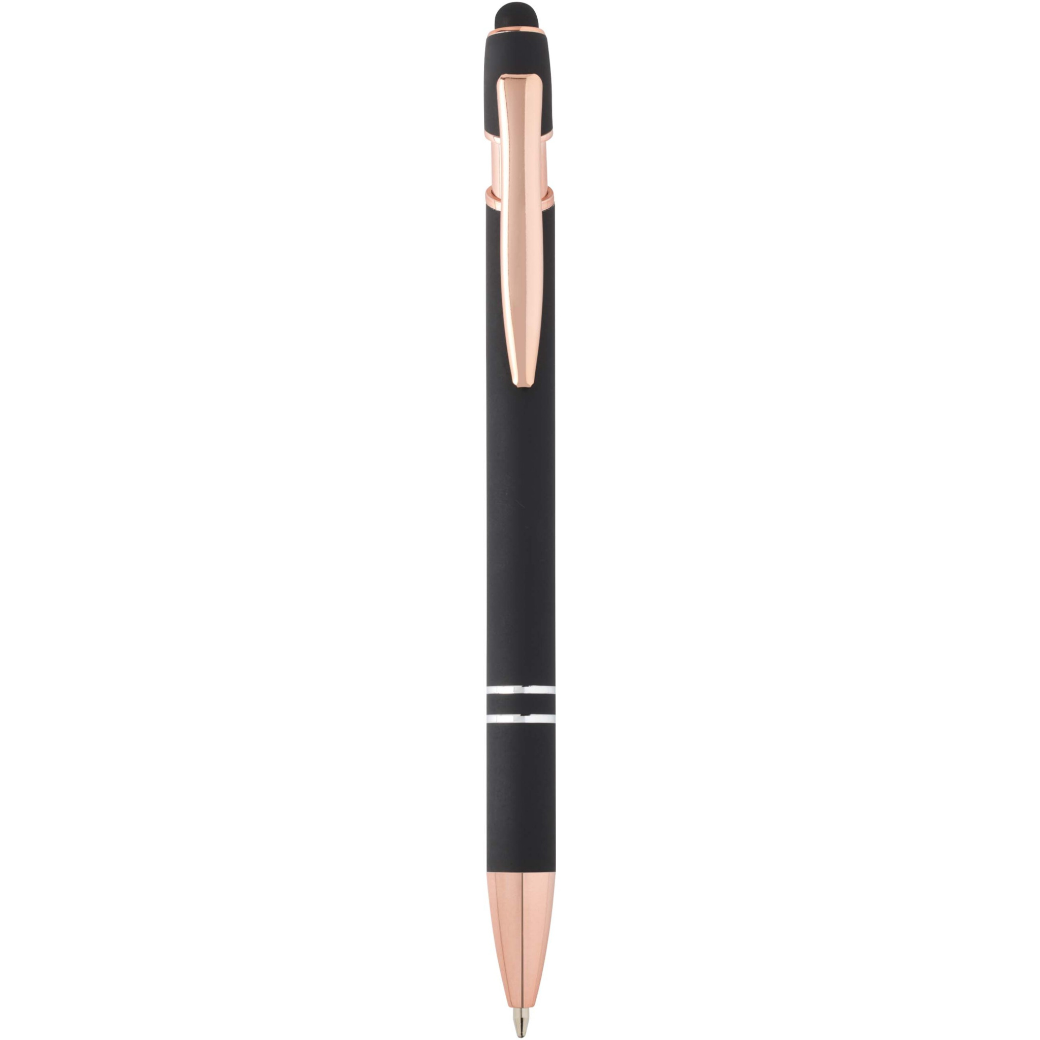 Шариковая ручка Nanna с покрытием из розового золота имеет корпус из переработанного алюминия и сенсорный стилус из силикона. Переработанный алюминий уменьшает количество отходов на свалках и помогает сохранять природные ресурсы для сокращения выбросов парниковых газов. Цвет чернил: черный. Длина непрерывной линии: 800 метров. Размер пера: 1,0 мм.