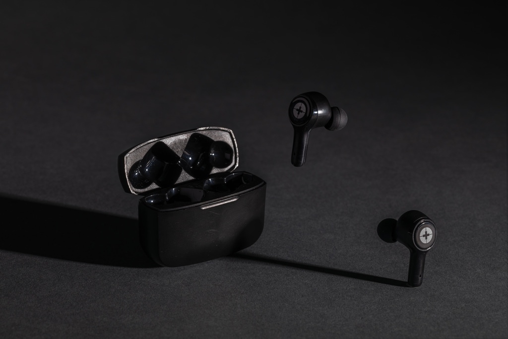 Лого трейд бизнес-подарки фото: Наушники-вкладыши Swiss Peak ANC TWS из переработанного пластика RCS