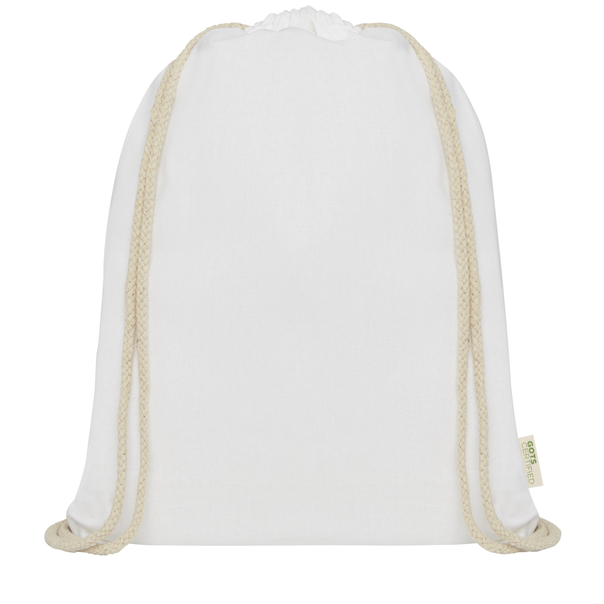 Orissa 100 g/m² organic cotton drawstring bag 5L, Белый