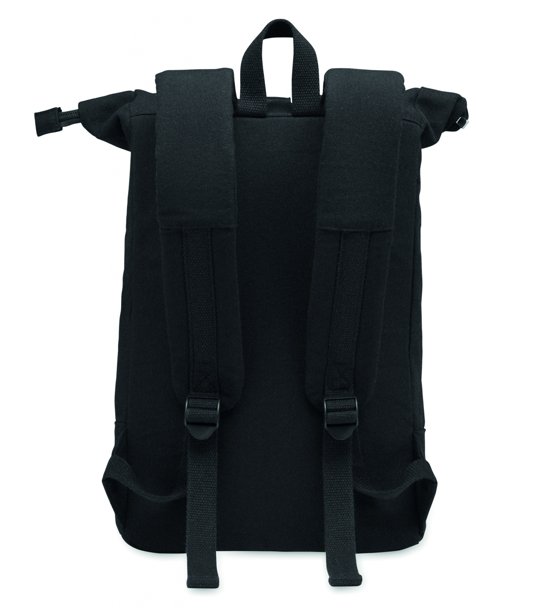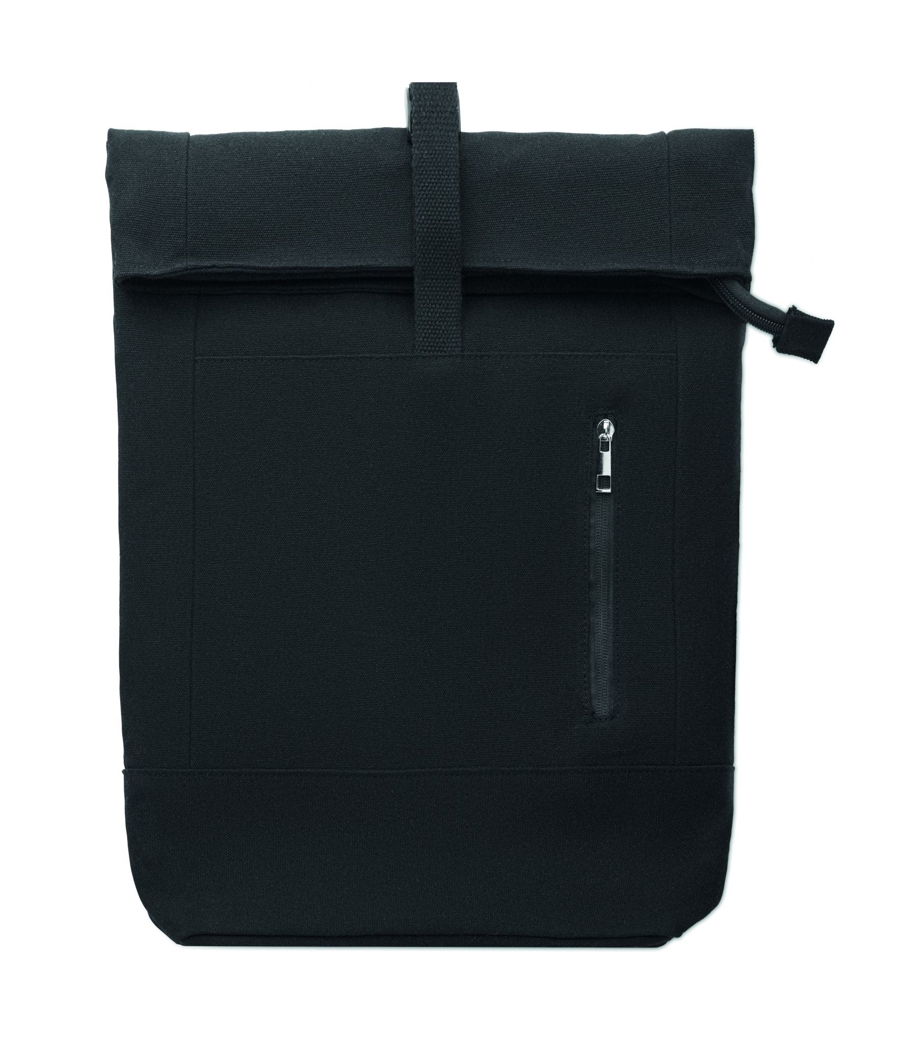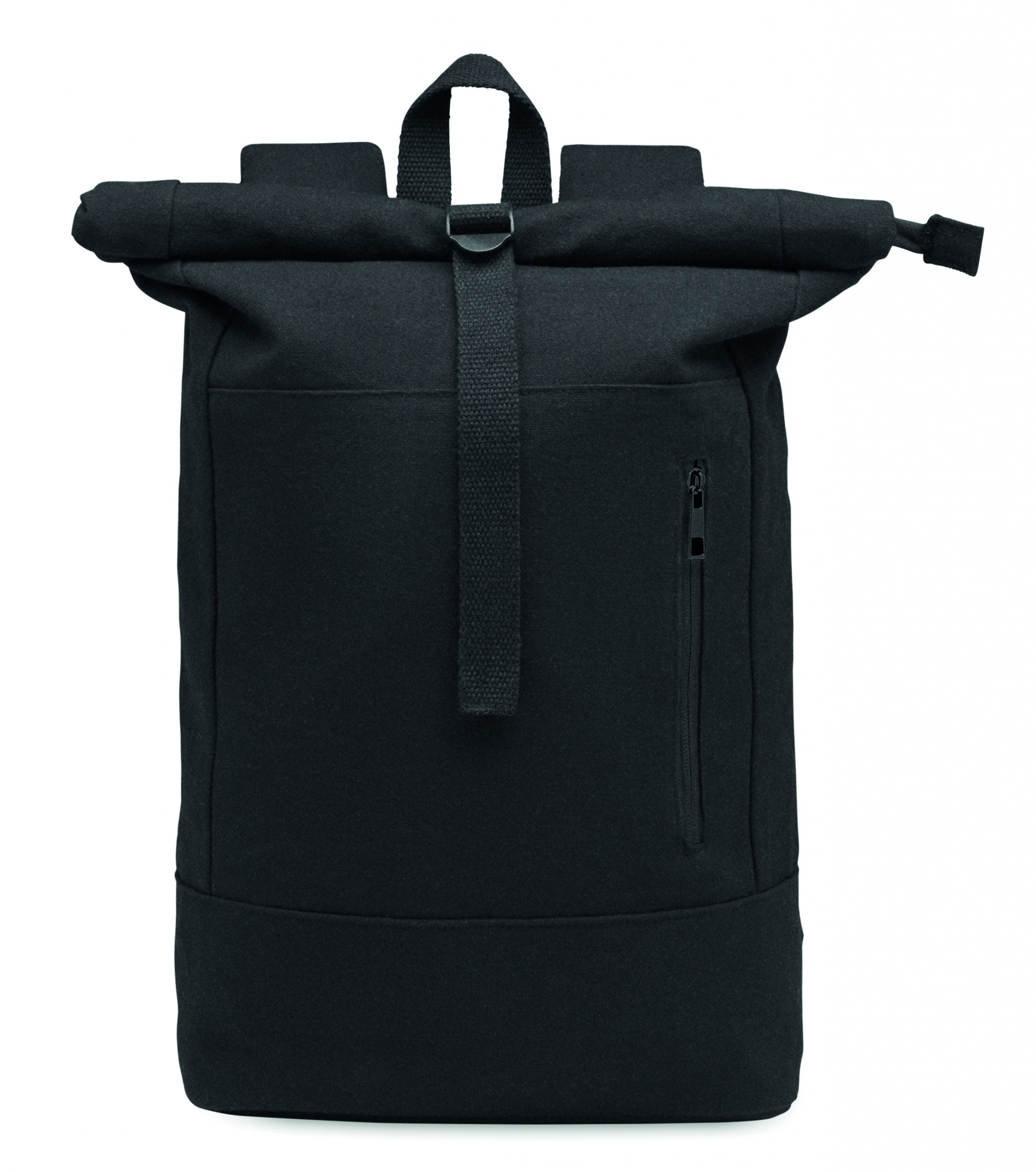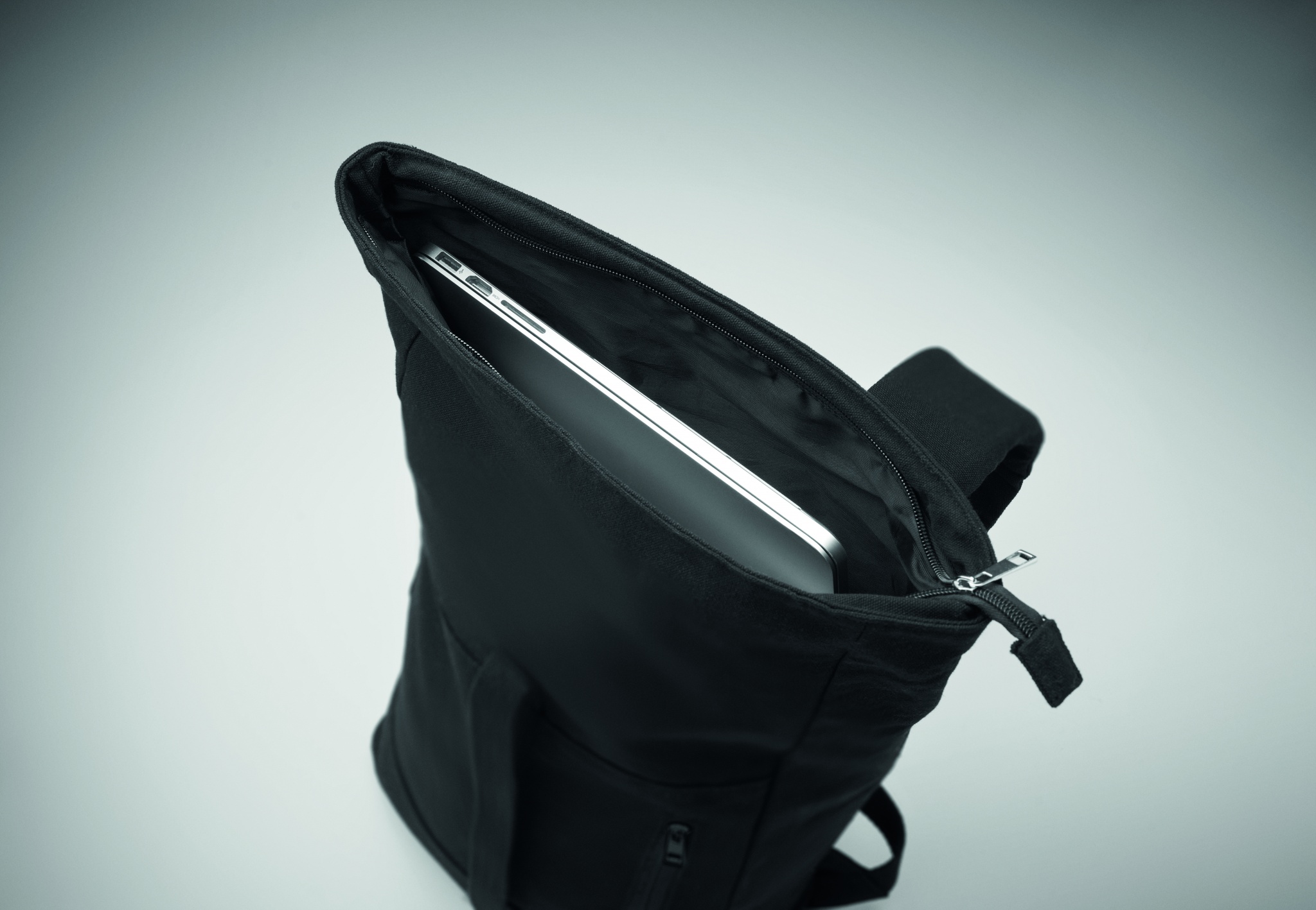 Рюкзак для 15-дюймового ноутбука с ролл-топ застежкой на молнии из переработанного хлопка и переработанного полиэстера (70%/30%). Передний карман на молнии. Спинка и плечевые ремни с мягкой подкладкой. 340 гр/м².