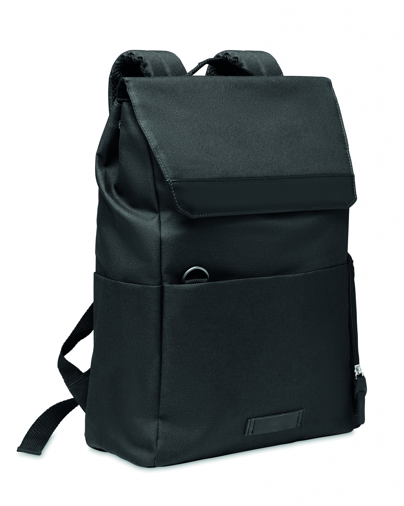 Рюкзак для ноутбука диагональю 15 дюймов из переработанного полиэтилена (RPET) 600D с магнитной застежкой. Основное отделение с мягкой прокладкой, передние карманы на молнии и 2 боковых кармана.