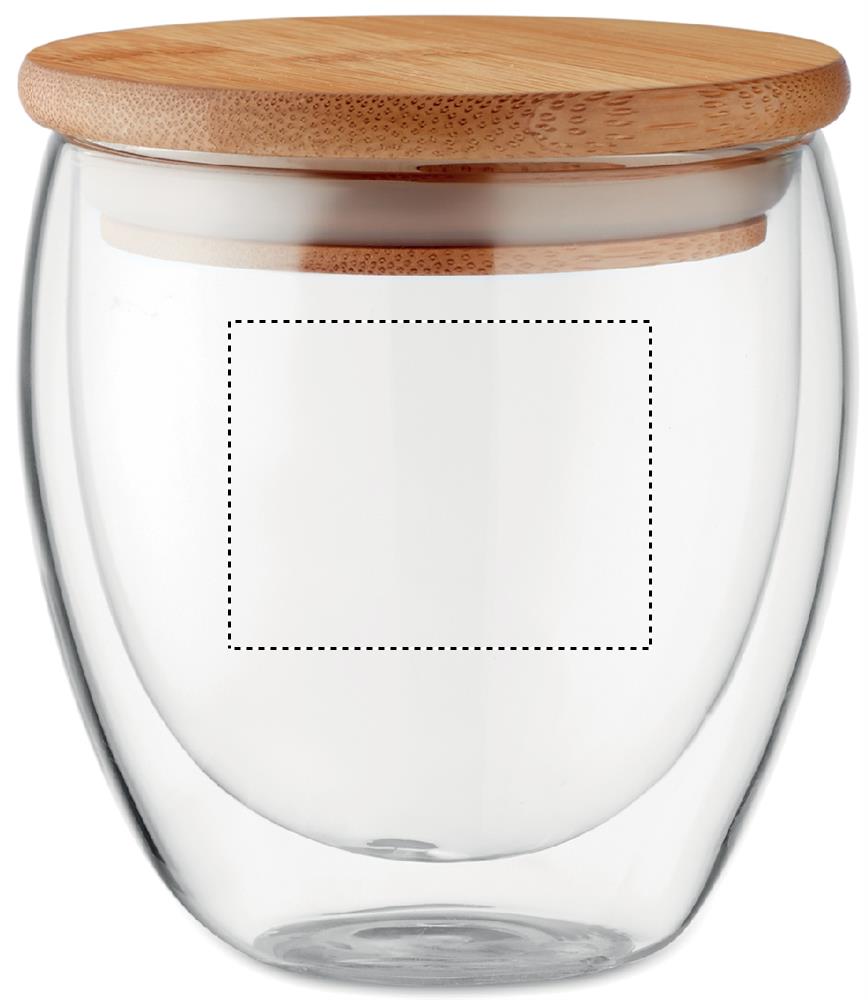 Стакан двустенчатый из боросиликатного стекла с бамбуковой крышкой и силиконовой прокладкой. Емкость 250 мл.