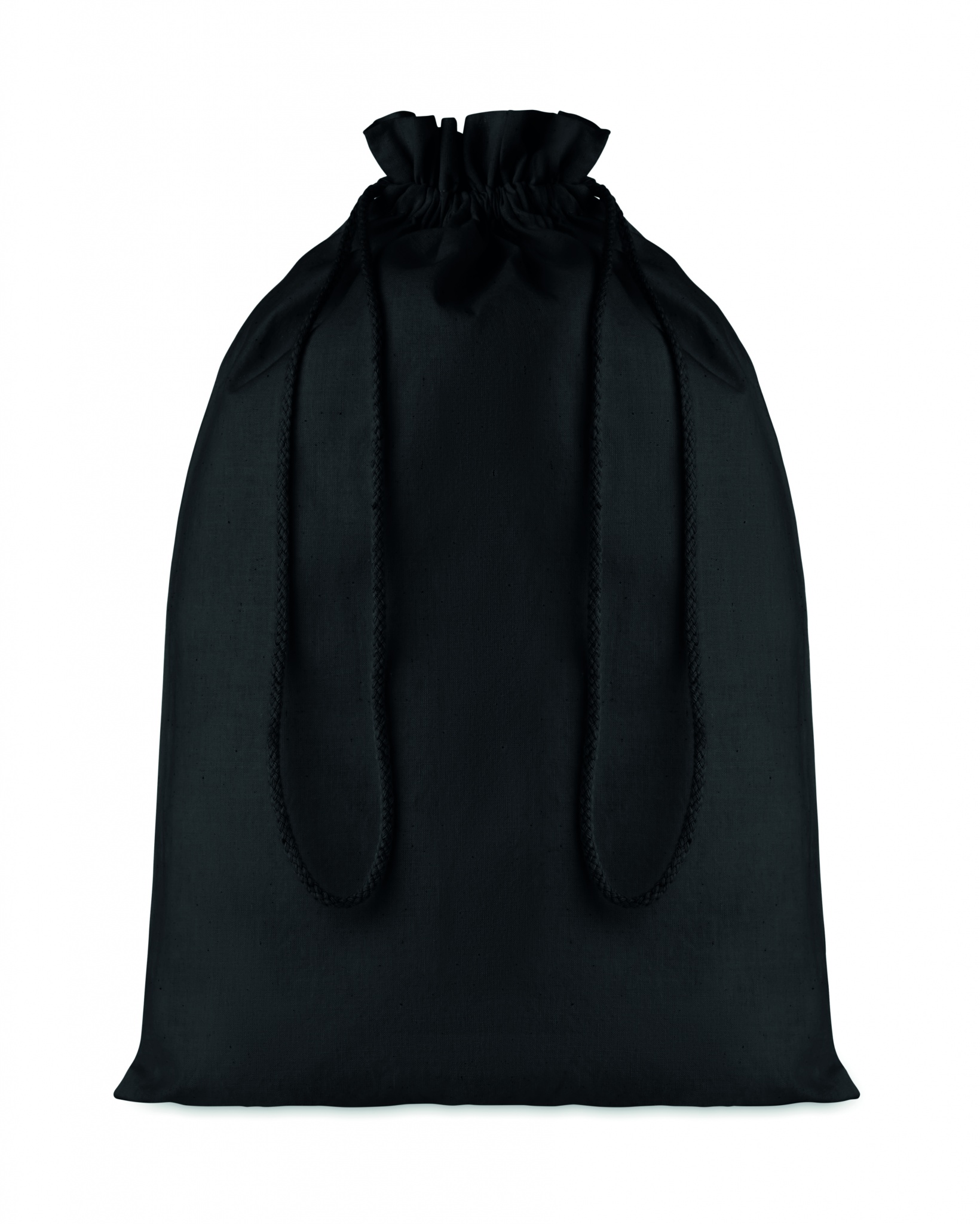 Большой хлопковый подарочный мешок плотностью 105 г/м² с завязками, размером 30 x 47 см, черного цвета, доступен с вашим индивидуальным дизайном на сайте www.logo.ee. Закажите этот и другие подарки и товары с персонализированной печатью онлайн для вашей компании!