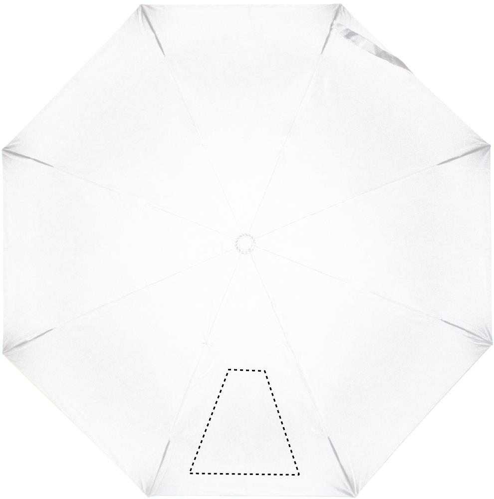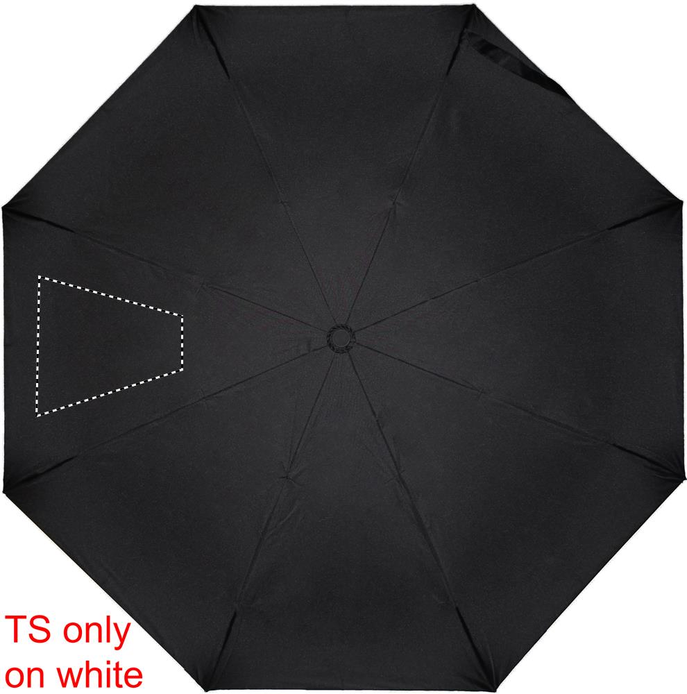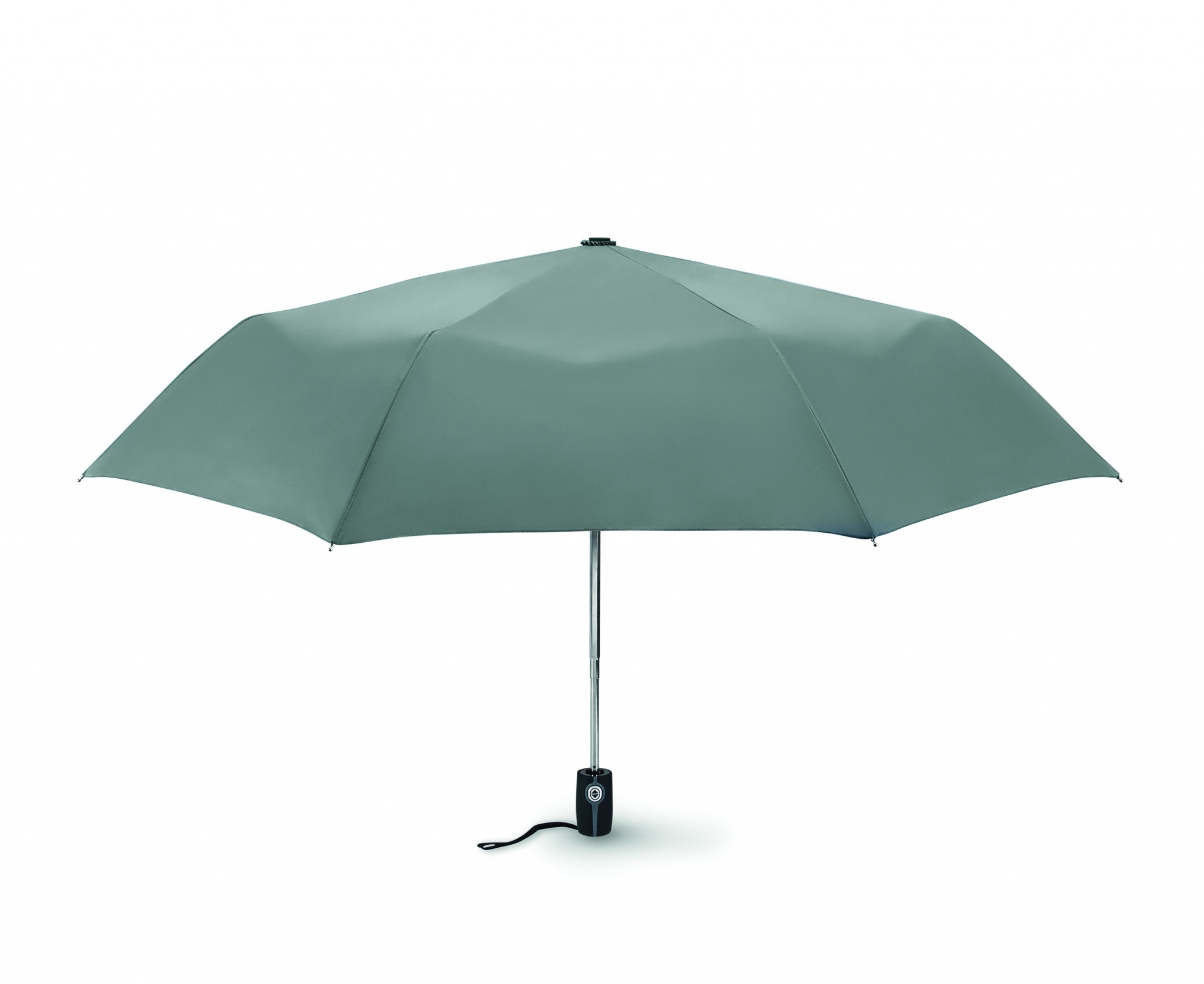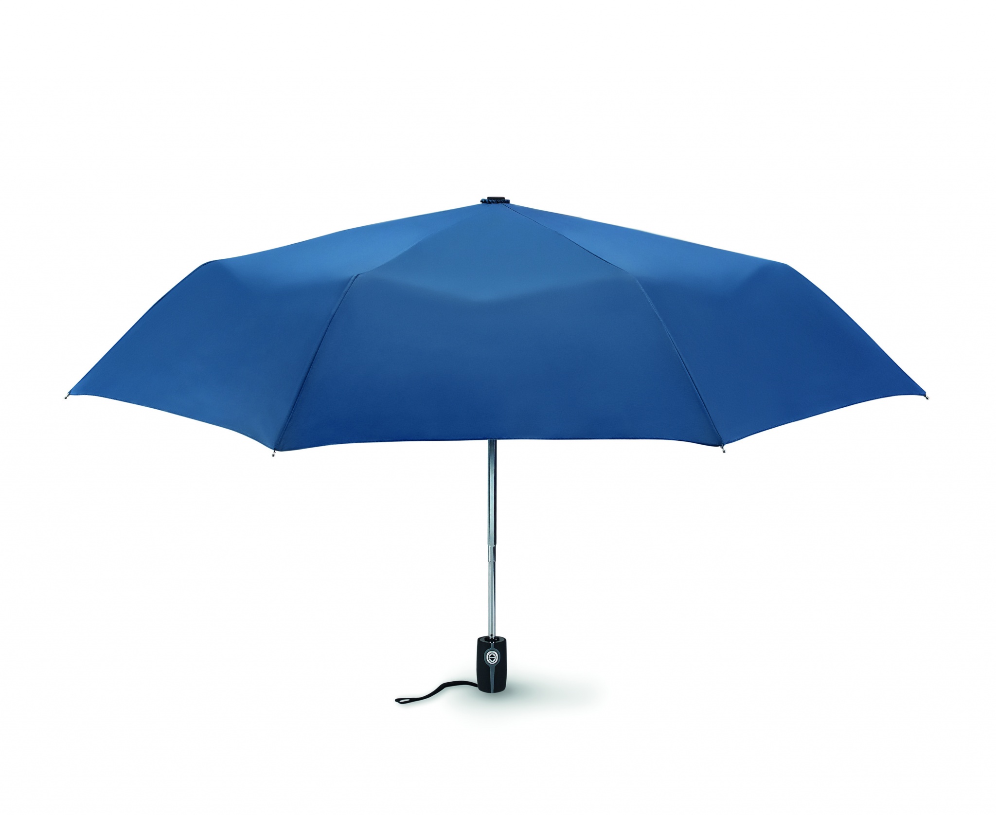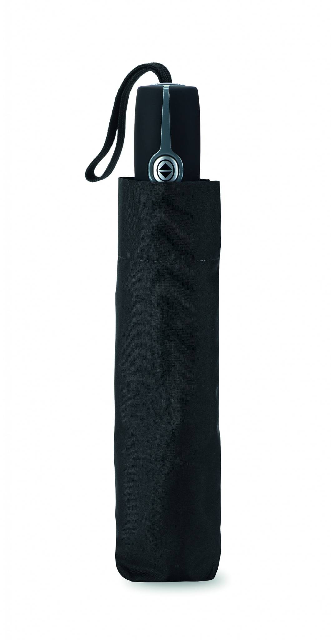 Зонт автомат в 3 сложения, устойчивый к ветру с металлическим стержнем, хромированным наконечником и черной прорезиненной ручкой. Длина в сложенном виде 21 см.