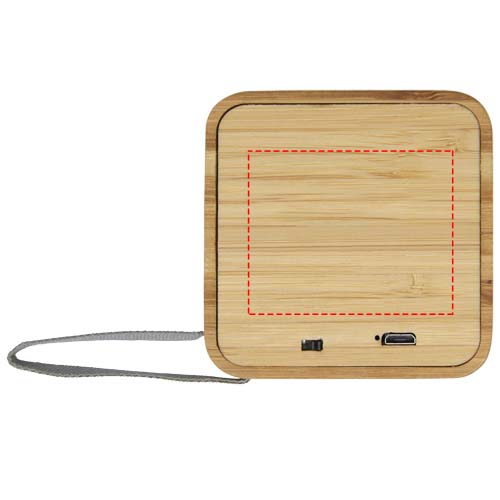 Bambu Bluetooth® högtalare med en 3W-utgång och kristallklart ljud. En kompakt högtalare med ett inbyggt 500 mAh-batteri som möjliggör upp till 3 timmars användning vid maximal volym. Bluetooth® 5.0 fungerande avstånd upp till 10 meter. Förpackad i en presentförpackning och levereras med en bruksanvisning (båda tillverkade av hållbart material). Micro-USB laddningskabel medföljer.Eftersom bambu är en naturprodukt kan det finnas små variationer i färg och storlek per objekt, vilket kan påverka det slutliga dekorationsutfallet.