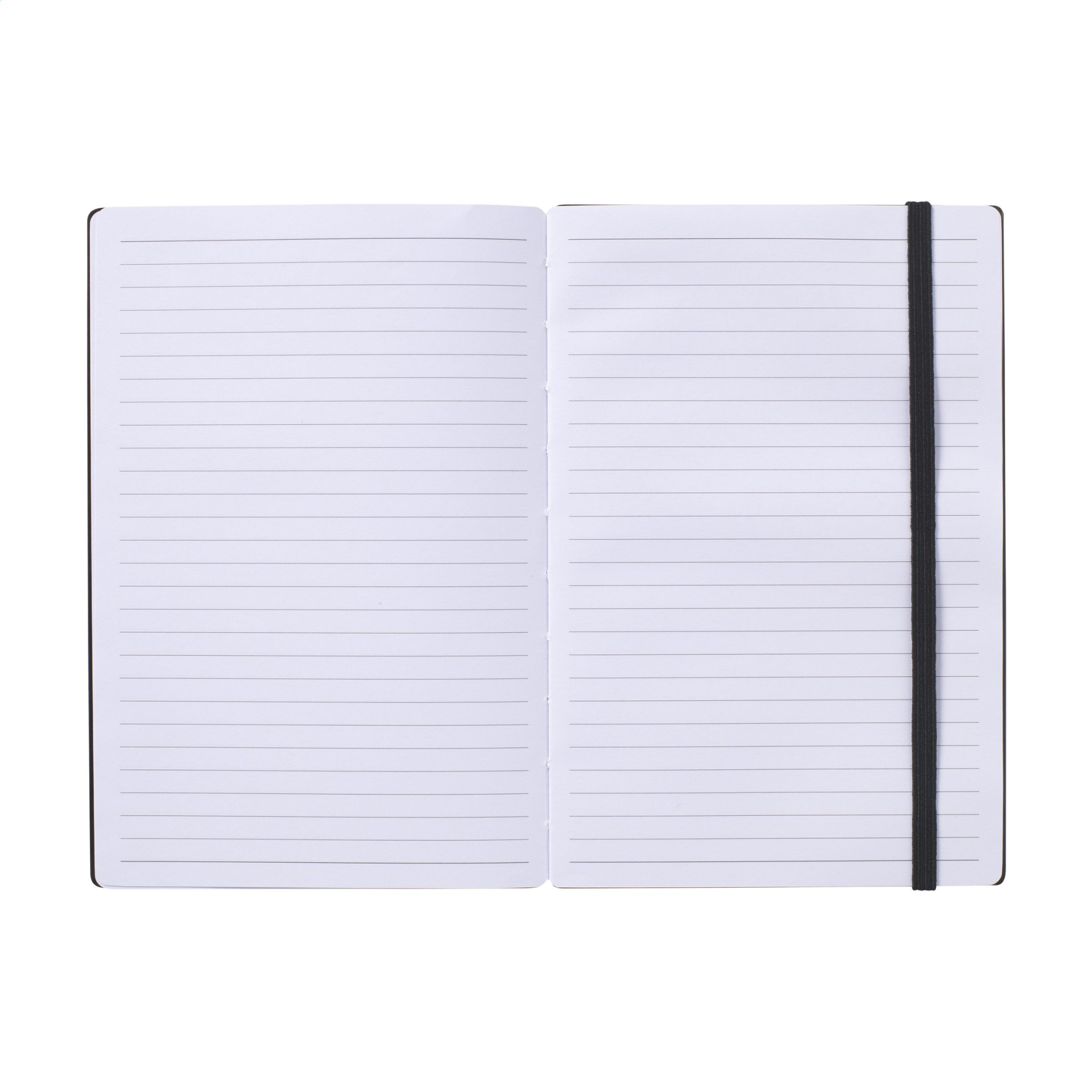 A5-storlek anteckningsbok med robust, svartlackerad FSC 100 % certifierad bambu inbunden. Med naken ryggbindning. Den här funktionen är speciellt utformad för att den öppna bärbara datorn ska ligga så plant som möjligt. Detta gör det mycket lättare att göra anteckningar och skissa. Med elastisk stängning och ca. 96 ark/192 sidor vitt, fodrat, FSC Mix-certifierat papper.
