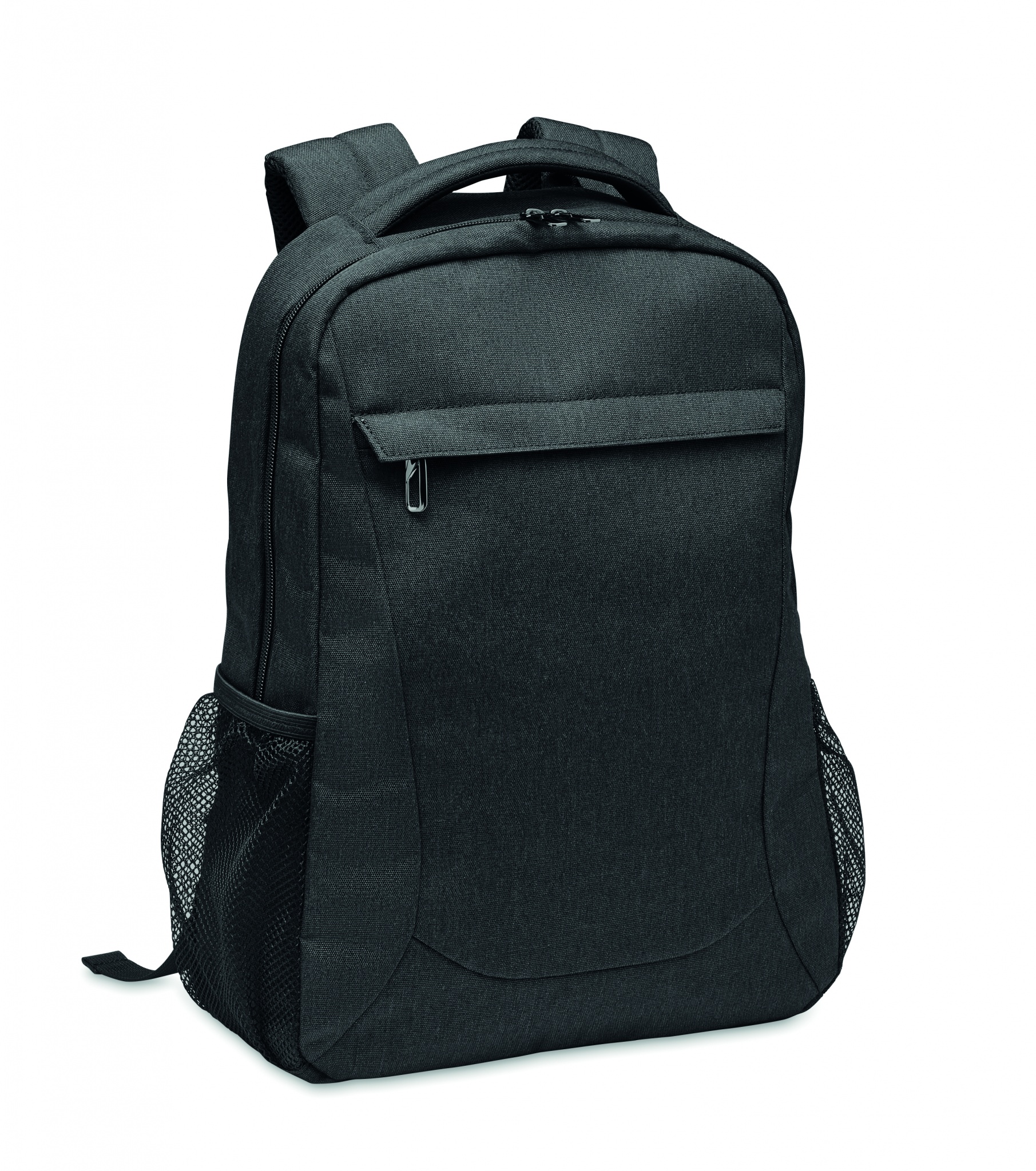 Ryggsäck med plats bärbar dator på 15 tum i 600D RPET-polyester. Invändigt fack för bärbar dator och små flera innerfack. Den har en ficka med dragkedja på framsidan och 2 nätfickor på sidan. Justerbara axelremmar. Trolleyhållare på baksidan.
