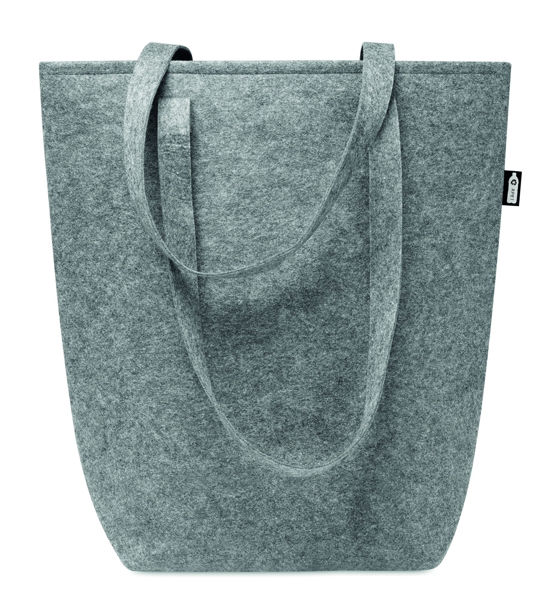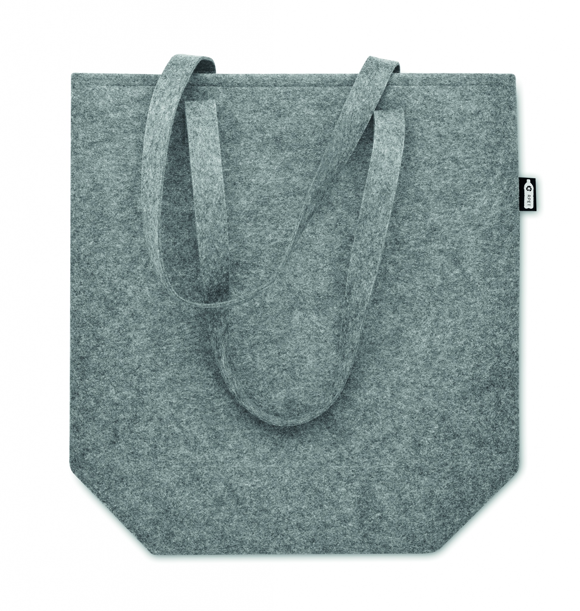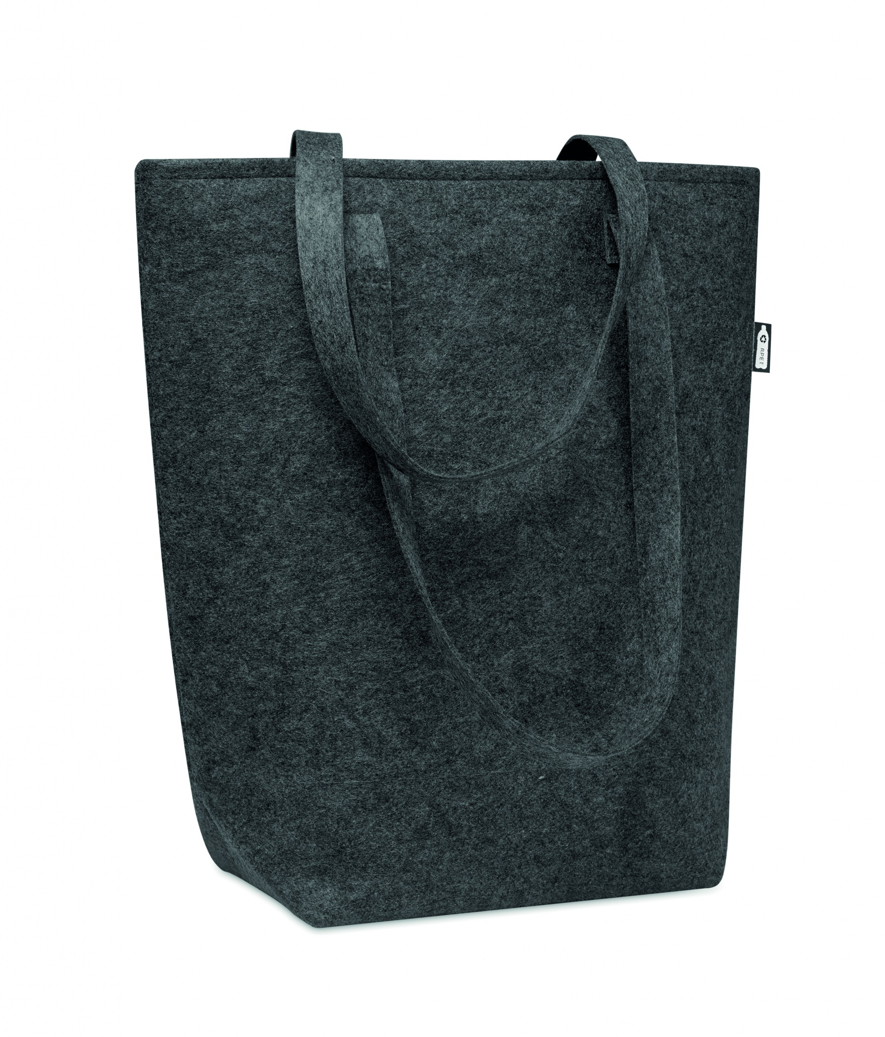 Snygg väska i kraftig RPET filt med långa handtag och bälg i botten. Filtens tjocklek: 2 mm.