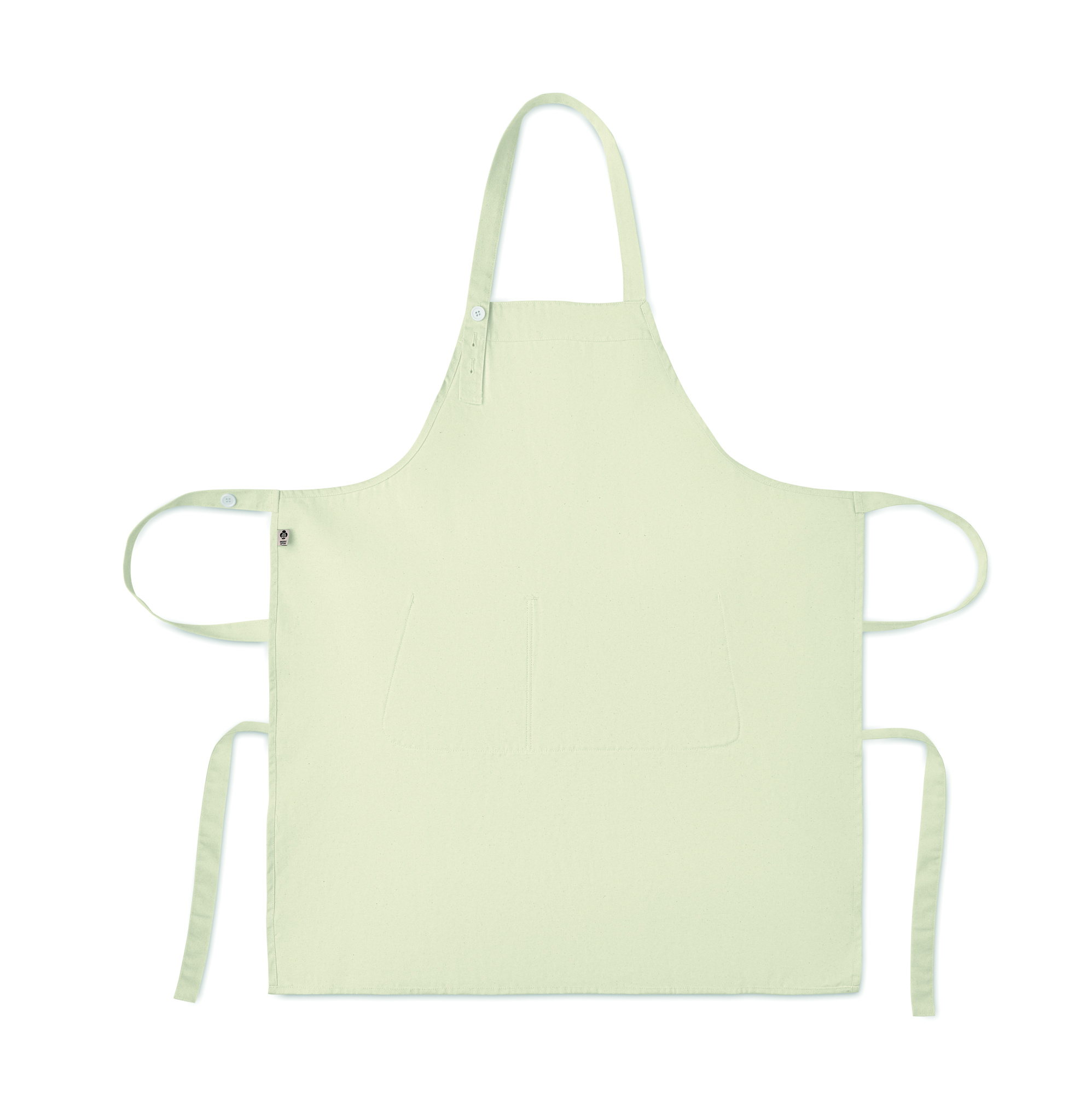 Justerbart förkläde med 1 stor framficka med 2 fack i 240 gr/m² ekologisk bomull. Med justerbar knapp på halsremmen. Denna produkt är certifierad enligt OEKO-TEX® STANDARD 100.