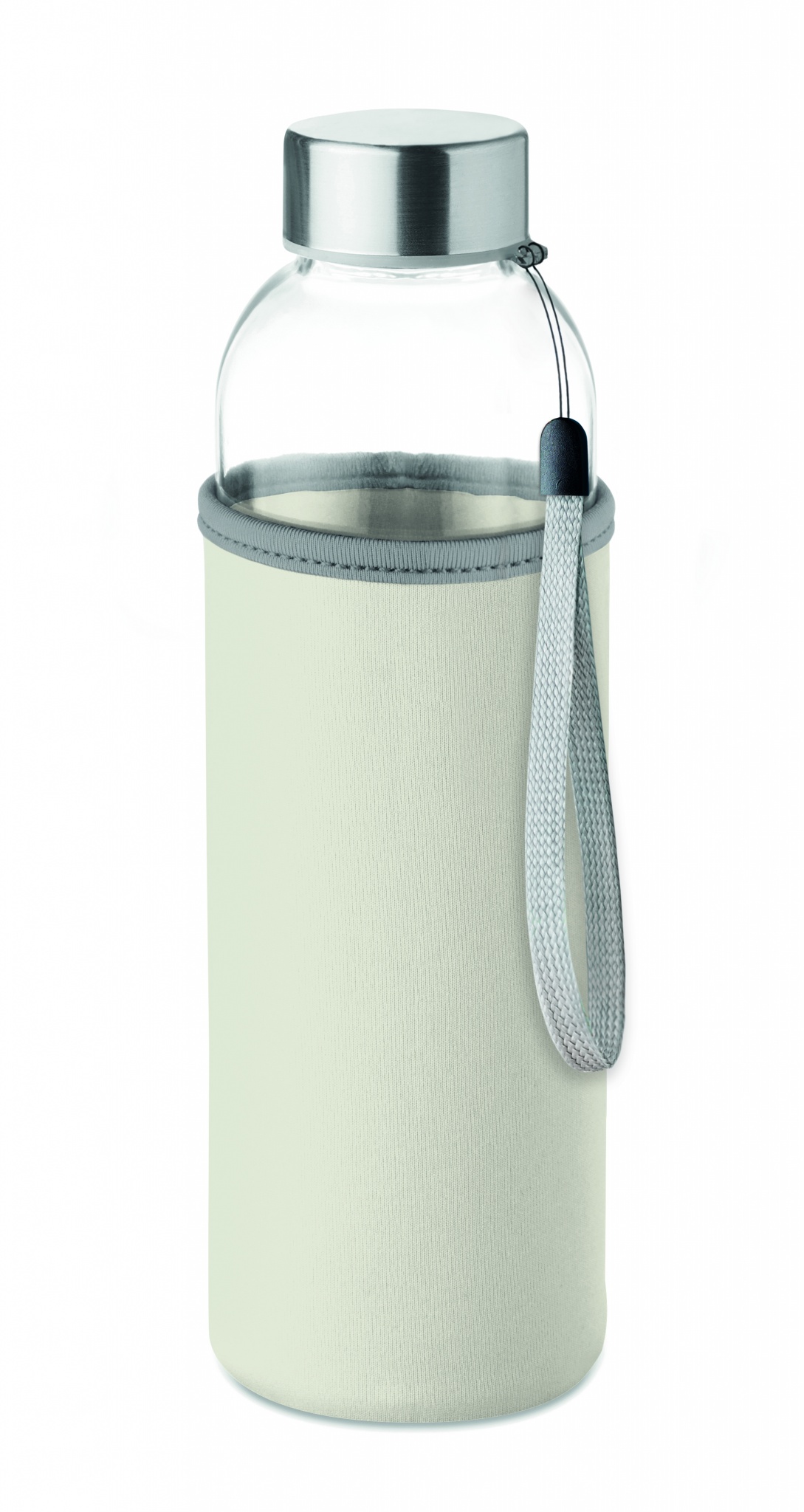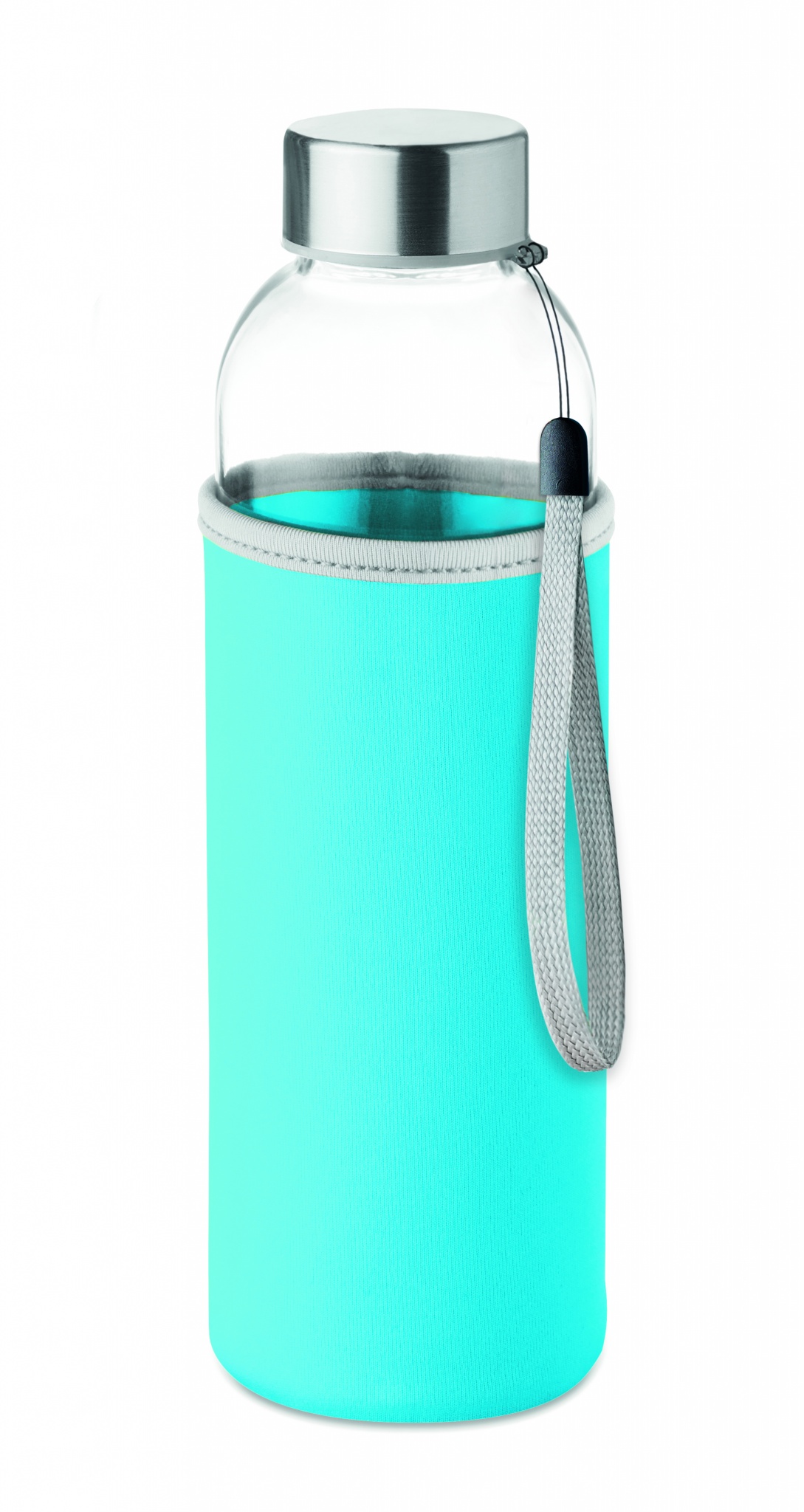 50 ml glasflaska med neoprenfodral i regnbågsfärger. Inte lämplig för kolsyrade drycker. Läcker inte. glasflaskan tål diskmaskin. Märkning som tål diskmaskin: 360 digital eller laser på flaskan.
