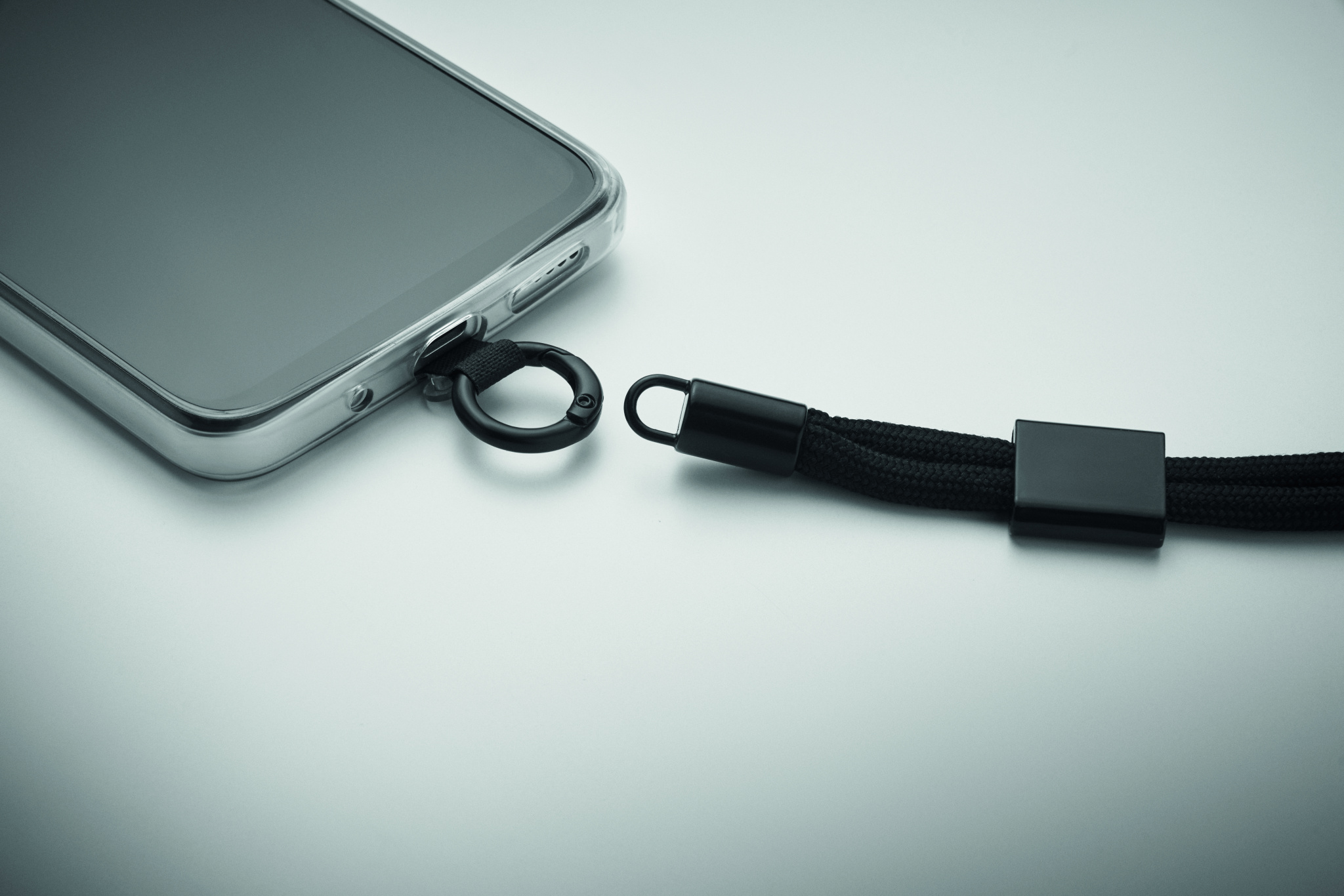 Justerbar handledsrem och hållare för telefon i RPET-polyester. Längd 25 cm.