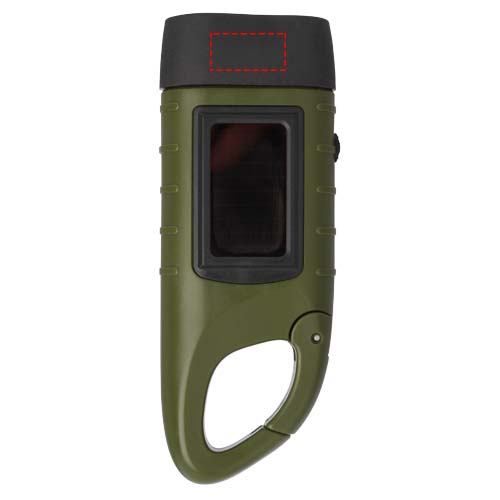 Är du trött på att strömmen tar slut när du behöver den som mest? Säg hejdå till de frustrerande stunderna med vår innovativa, problemfria belysningslösning Helios. Denna ficklampa av återvunnen plast har en inbyggd karbinhake som gör att den enkelt kan fästas på ryggsäckar, bälten eller annan utrustning, vilket gör den perfekt för camping eller vandring. Med bara 1 minuts handvevning kan du få ljus under hela 8 minuter. Och när solen skiner utnyttjas dess energi i solpanelen så att din ljuskälla alltid är redo. Utrustad med 3 LED-lampor som har en ljusstyrka på 10 000 mcd. Batterityp: 40 mAh NiMH, 3,6 V. Förpackad i en STAC-presentförpackning från hållbara källor.