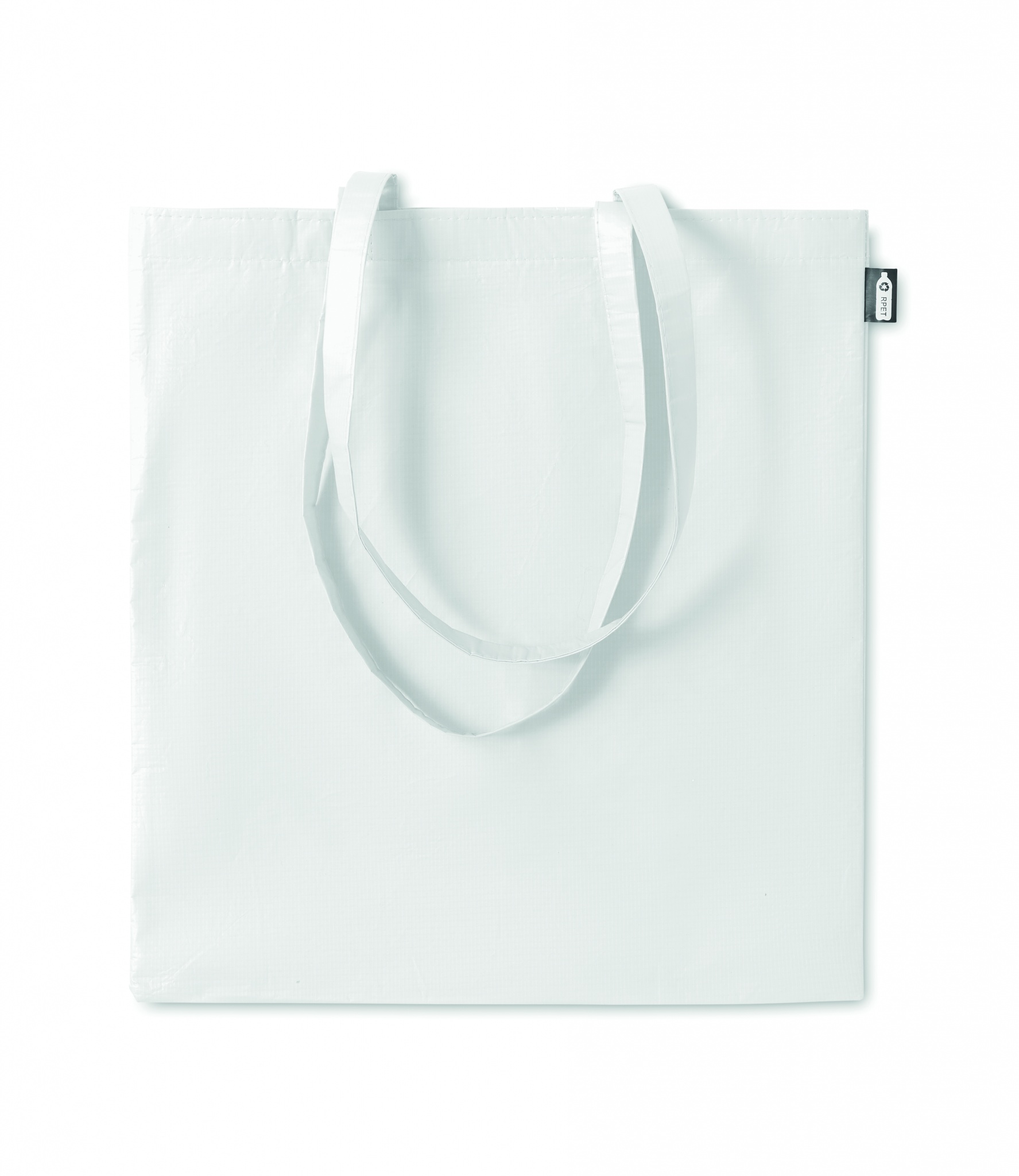 Laminerad kasse i RPET non woven med långa handtag. 100 gr/m².