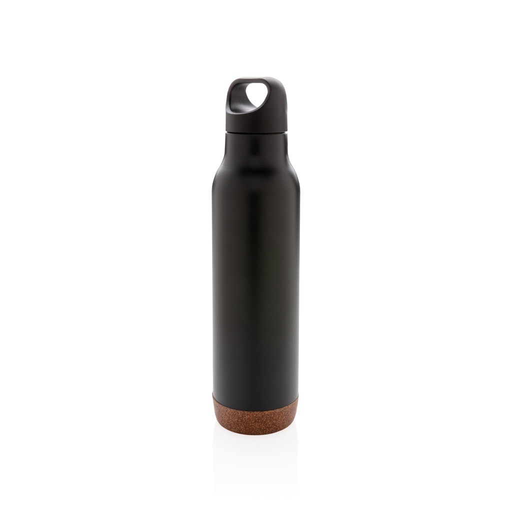 Vakuumisolerad läckagesäker flaska med insida i hållbart 304 SS och utsida i 201. Korkdetalj på botten av flaskan. Håller din dryck varm i upp till 5tim eller kyld upp till 15tim. Volym: 600ml.