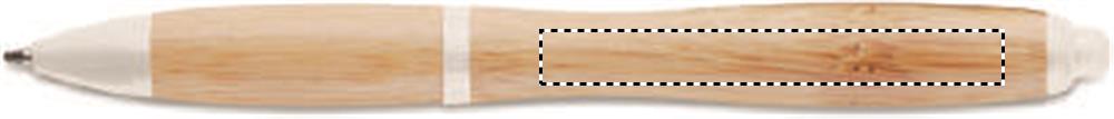 Kulspetspenna i bambu med detaljer i plast. Blått bläck.