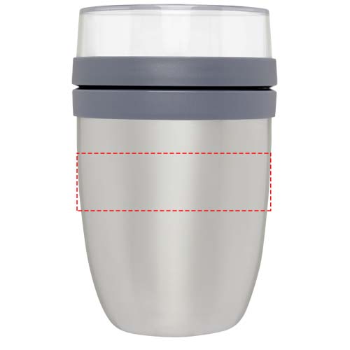 Isolerad lunchlåda med två olika fack för att hålla de olika ingredienserna åtskilda. Båda behållarna har ett separat lock så att ingredienserna inte blandas. Håller mat varm i 10 timmar och kall i 16 timmar. För att se till att maten förblir varm eller kall så länge som möjligt, rekommenderar vi att du sköljer lunchlådan med varmt eller iskallt vatten innan du fyller på den. Innehållet i den översta transparenta behållaren är 200 ml, vilket innebär att den kan hålla ca 75 gram fast föda. Bottenbehållarens kapacitet är 500 ml. Tillverkad av slitstarkt material och utsidan av lådan förblir sval och torr. Handtvätt rekommenderas. Plastdelarna i locket kan läggas i diskmaskinen. Läckagesäker. BPA-fri. 2 års garanti från Mepal.