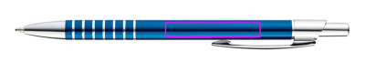 Smal metallkulpenna med blåskrivande refill och graverad greppzon. Vi graverar din logotyp under klämman.