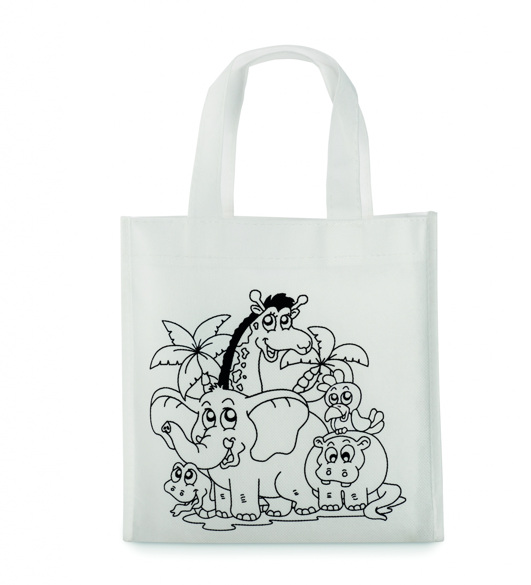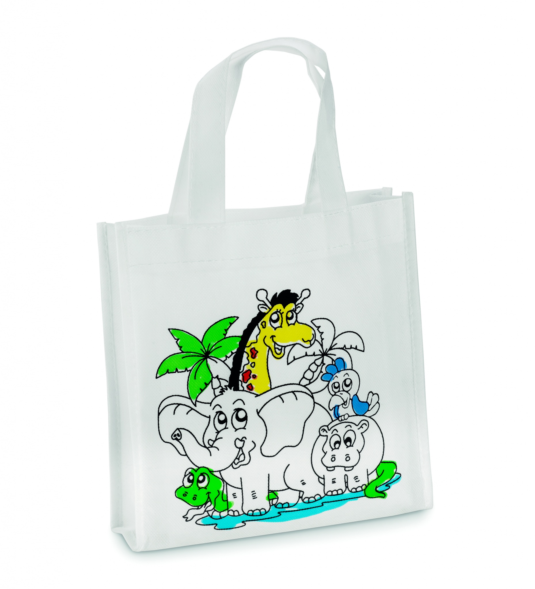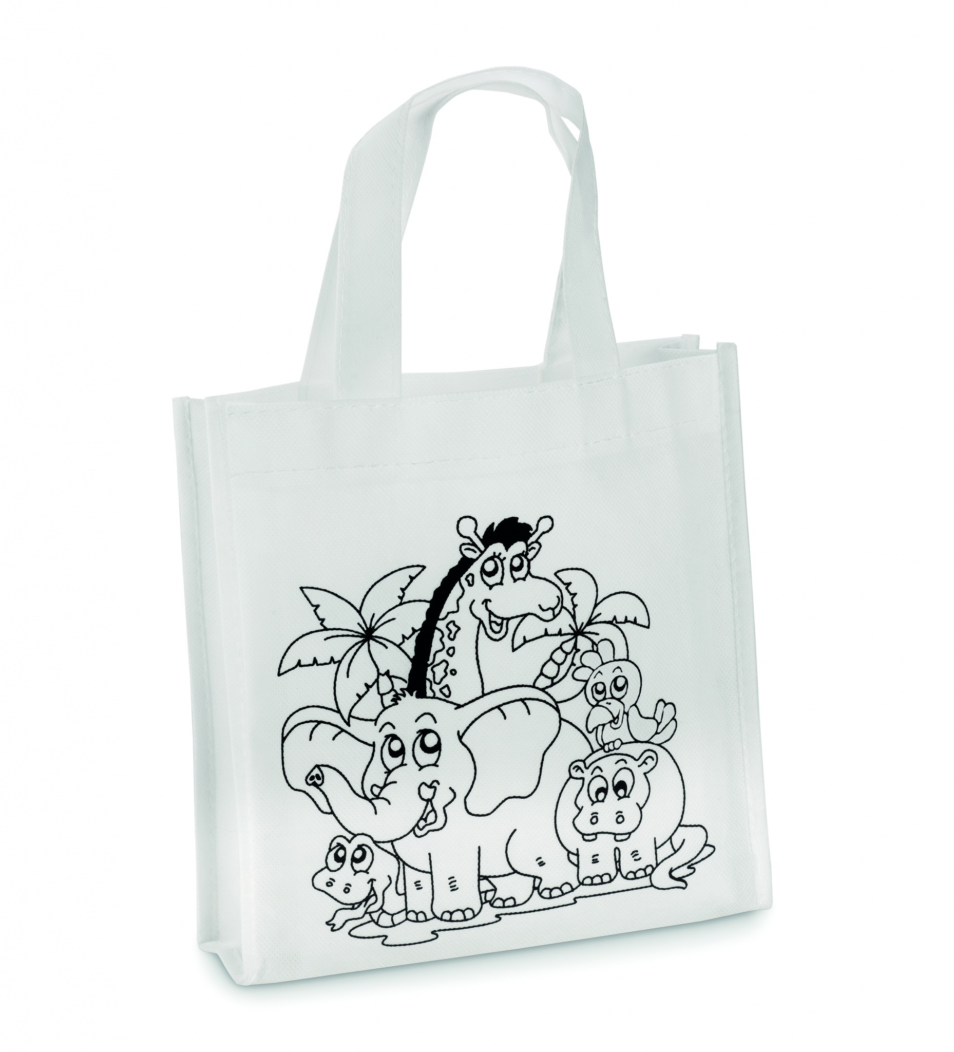 Non-woven mini shoppingväska för de minsta med 5 pennor för färgläggning. 80 g / m².