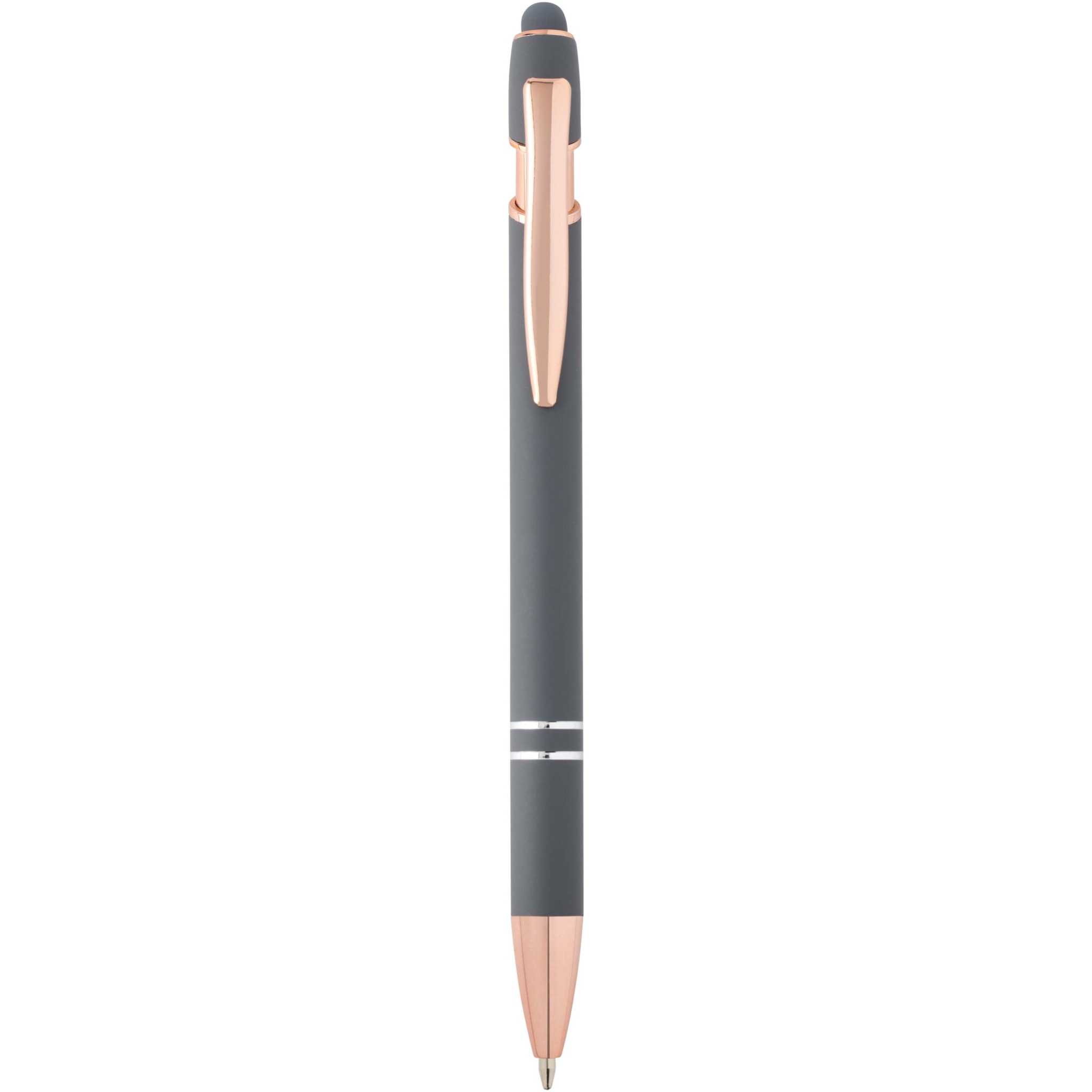 Kulspetspennan Nanna med finish i roséguld har en pennkropp av återvunnen aluminium och en touchpenna av silikon. Det återvunna aluminiumet minskar också mängden avfall i deponier och bidrar till att bevara naturresurser med syftet att minska växthusgasutsläppen. Bläckfärg: Blå. Skrivlängd: 800 meter. NIB-storlek: 1,0 mm.