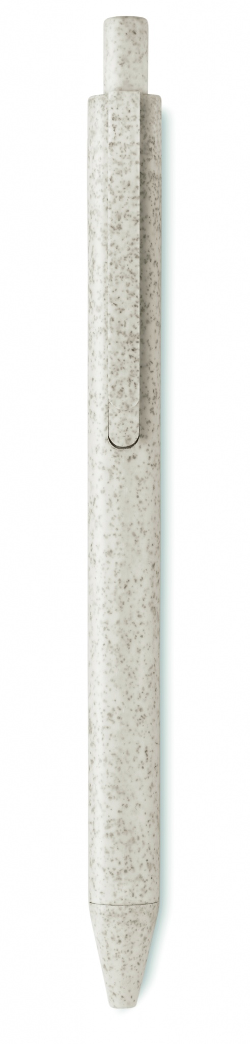Penna i miljövänligare material. Vete-halm 50% och PP plast 50% (blått bläck).