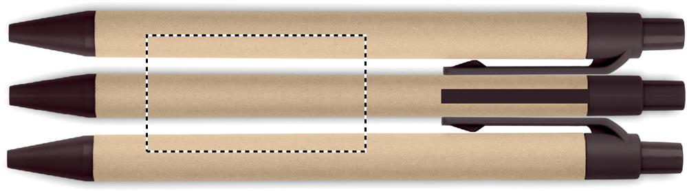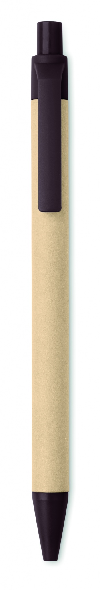 Penna med pappers kropp och övriga delar gjorda av kaffeböna 40% och 60% ABS. Blått bläck