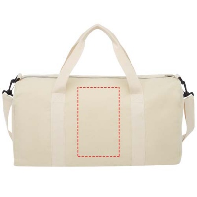 Duffelväska i återvunnen bomulls- och polyesterblandning med justerbar axelrem. Återvunnen bomull är tillverkad av konsumentavfall som genereras av textilfabriker under skärprocessen. Liknande färger blandas ihop, vilket innebär att ingen ytterligare färgning krävs. Det kan finnas mindre variationer i färgen på den faktiska produkten på grund av produktionsprocessens art. Denna funktion ger tydligt ett mer autentiskt utseende.