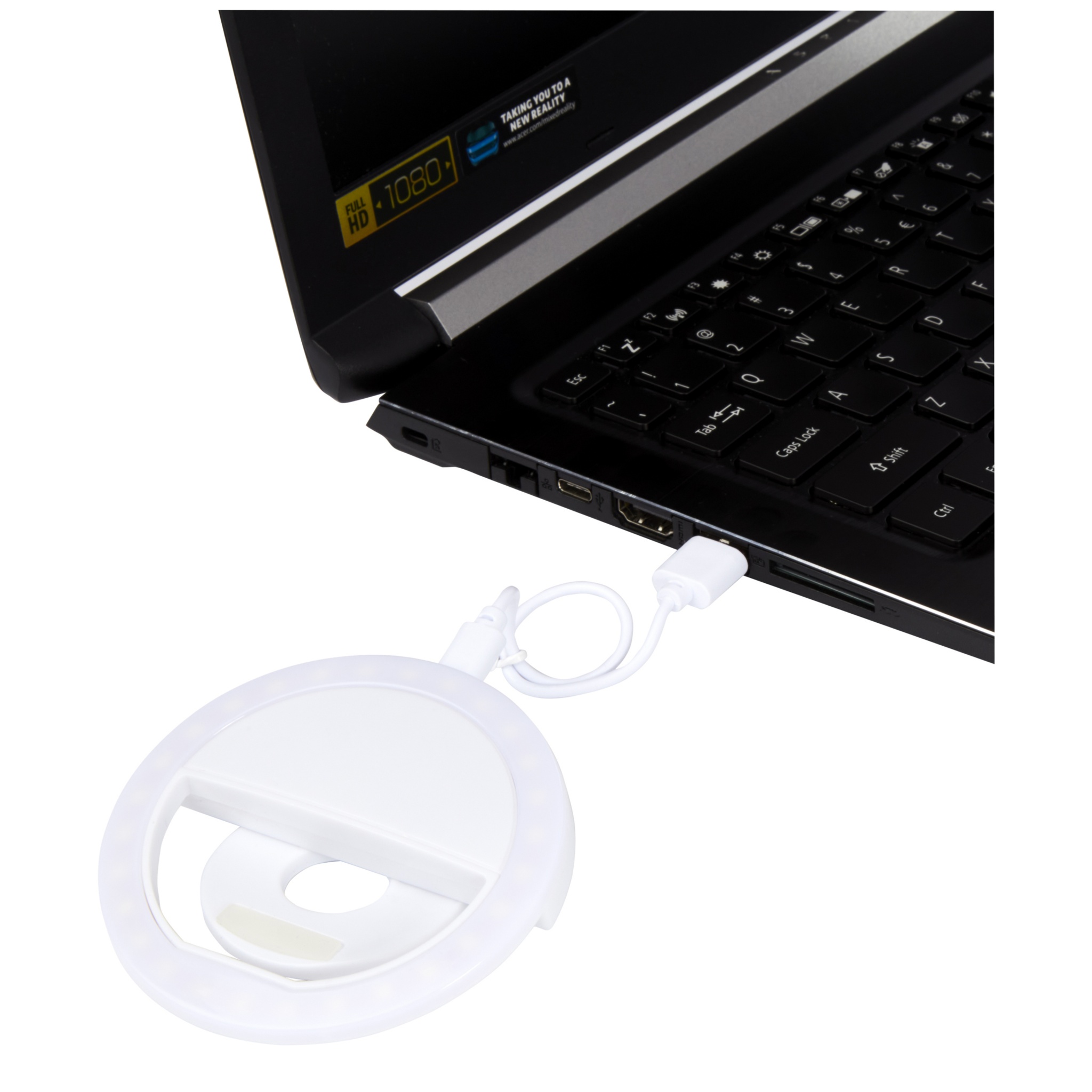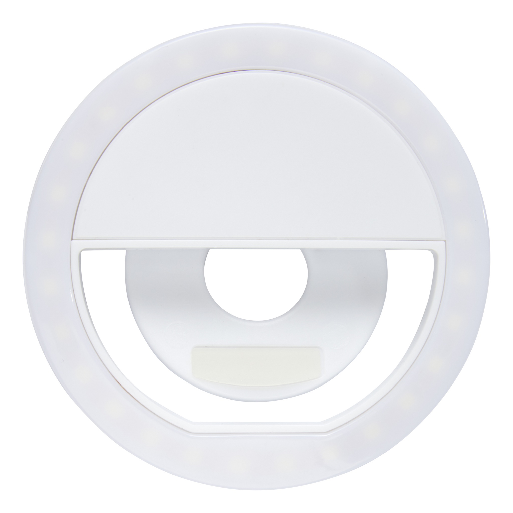 Bärbar selfielampa med 28 lysdioder som enkelt kan installeras på en telefon eller bärbar dator med en klämfunktion. En måste-ha-pryl för alla video- och vlog-skapare eller alla som gillar att ta bilder. Det vita ljuset är justerbart i 3 olika ljusstyrkor för perfekt ljusexponering. De 28 lysdioderna är placerade i en cirkel och ger jämnt ljus över ansiktet. Selfielampan har en kapacitet på minst 30 minuter vid maximal ljusstyrka.