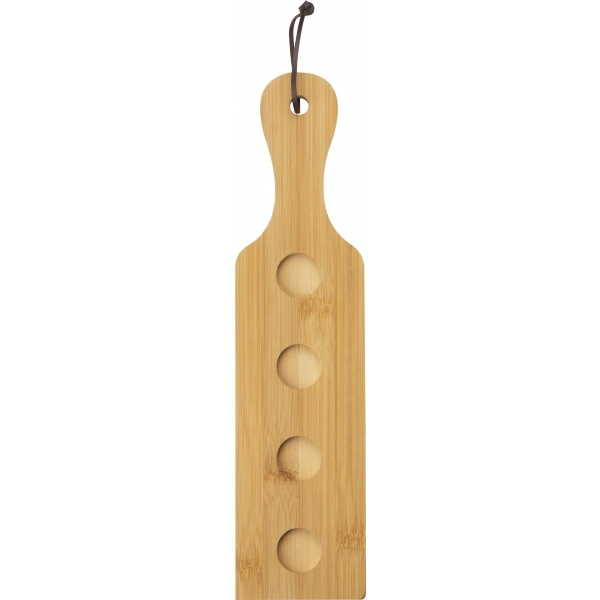 5-delat snapsglasset med 4 glas à 3cl vardera och en träskiva med handrem för transport. Din logotyp kommer att graveras på tavlan.