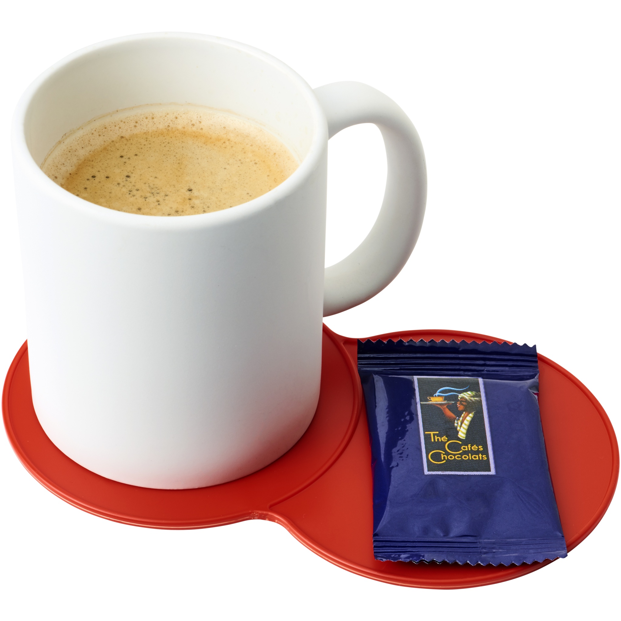 Sidekick underlägg i plast. Större underlägg med plats för flera drycker, eller en dryck och en kaka. GPPS-plast.