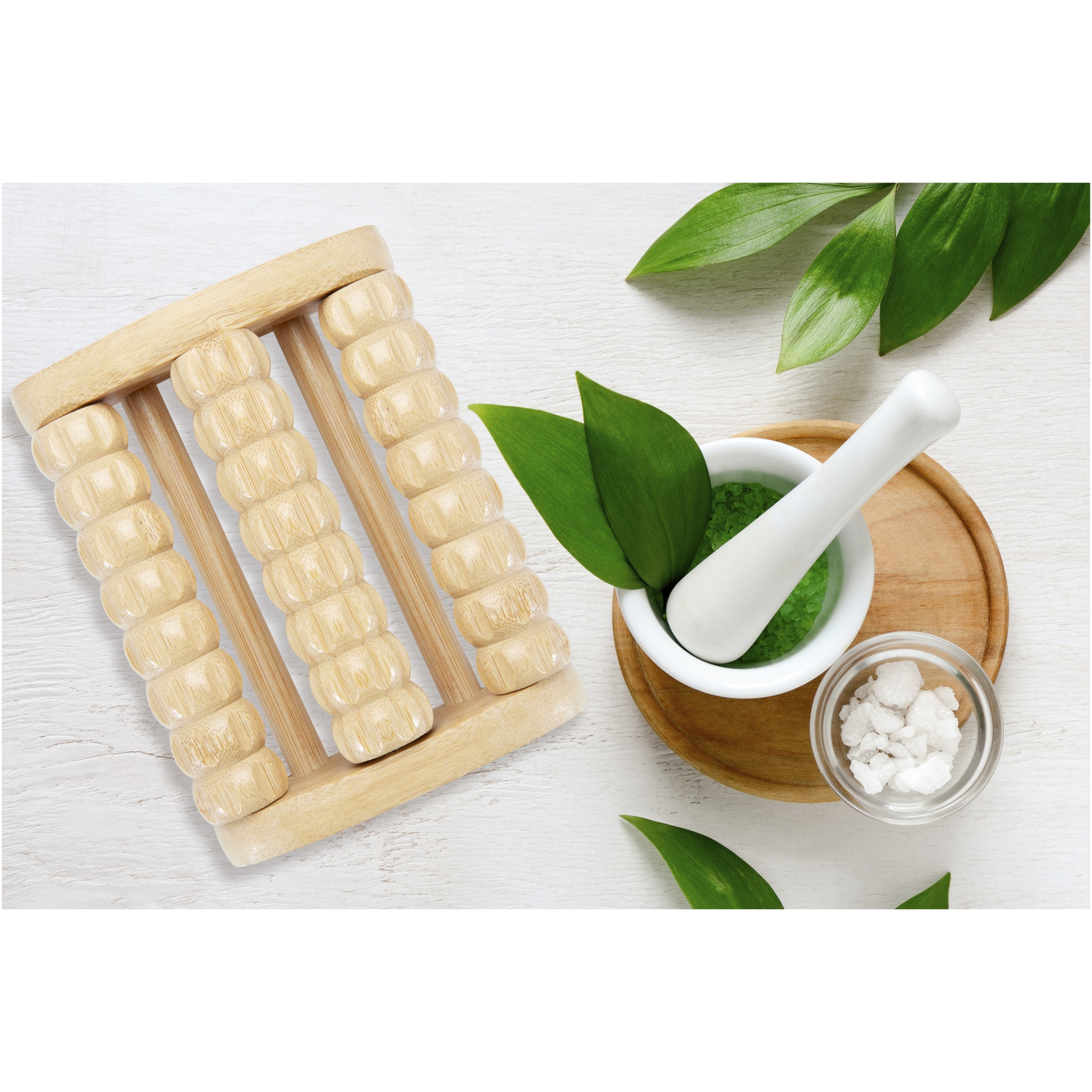 Fotmassagerulle gjord av bambu med 3 rader av massage stavar. Placera helt enkelt massageapparaten på golvet och flytta sedan fötterna över för en skön avslappnande känsla. Den använda bambun kommer från och produceras enligt hållbara standarder.