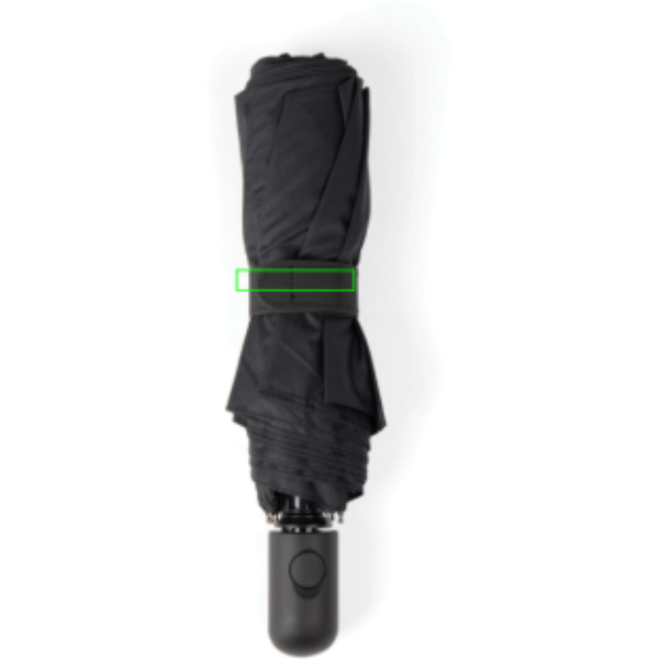 Modernt paraply som håller dig torr även de regnigaste dagarna. Dess kompakta storlek gör den till en perfekt följeslagare för livet på språng. Tillverkad av premium 190T pongee RPET-tyg, ger den utmärkt regnskydd samtidigt som den har en tidlös design. Med ett metallskaft och en full glasfiberkonstruktion, säkerställer detta paraply styrka och hållbarhet för utmanande väderförhållanden. Det minimalistiska handtaget i ABS-plast, med en bekväm gummifinish, ger en modern touch och ett säkert grepp. Utrustad med automatisk öppning/manuell stängning. Förvaringspåsen är tillverkad av klassiskt Baltimore PU och ger extra skydd när det inte används. Stormproof. Med AWARE™-spårningsteknologi bekräftar detta paraply den genuina användningen av återvunnet material och understryker vårt engagemang för ansvarsfullt inköp.