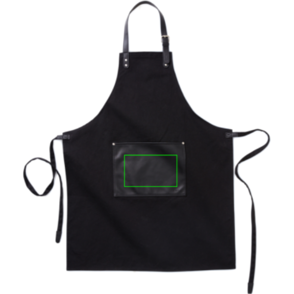 Stilrent och klassiskt förkläde i tjock bomullscanvas med diskreta detaljer i PU. Reglerbart spänne upptill och en stor ficka framtill. Ett förkläde med lång livslängd som bara blir finare med tiden.