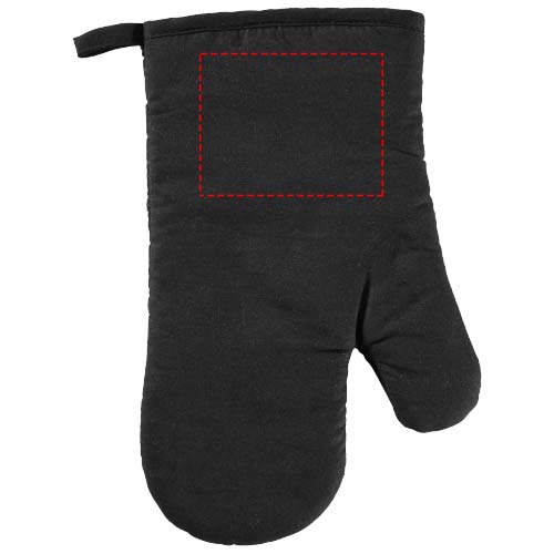 Grytvante i bomull. Ena sidan med diamantmönster och den andra sidan hålls slätt för dekoration. Vantens öppning är 13 cm.